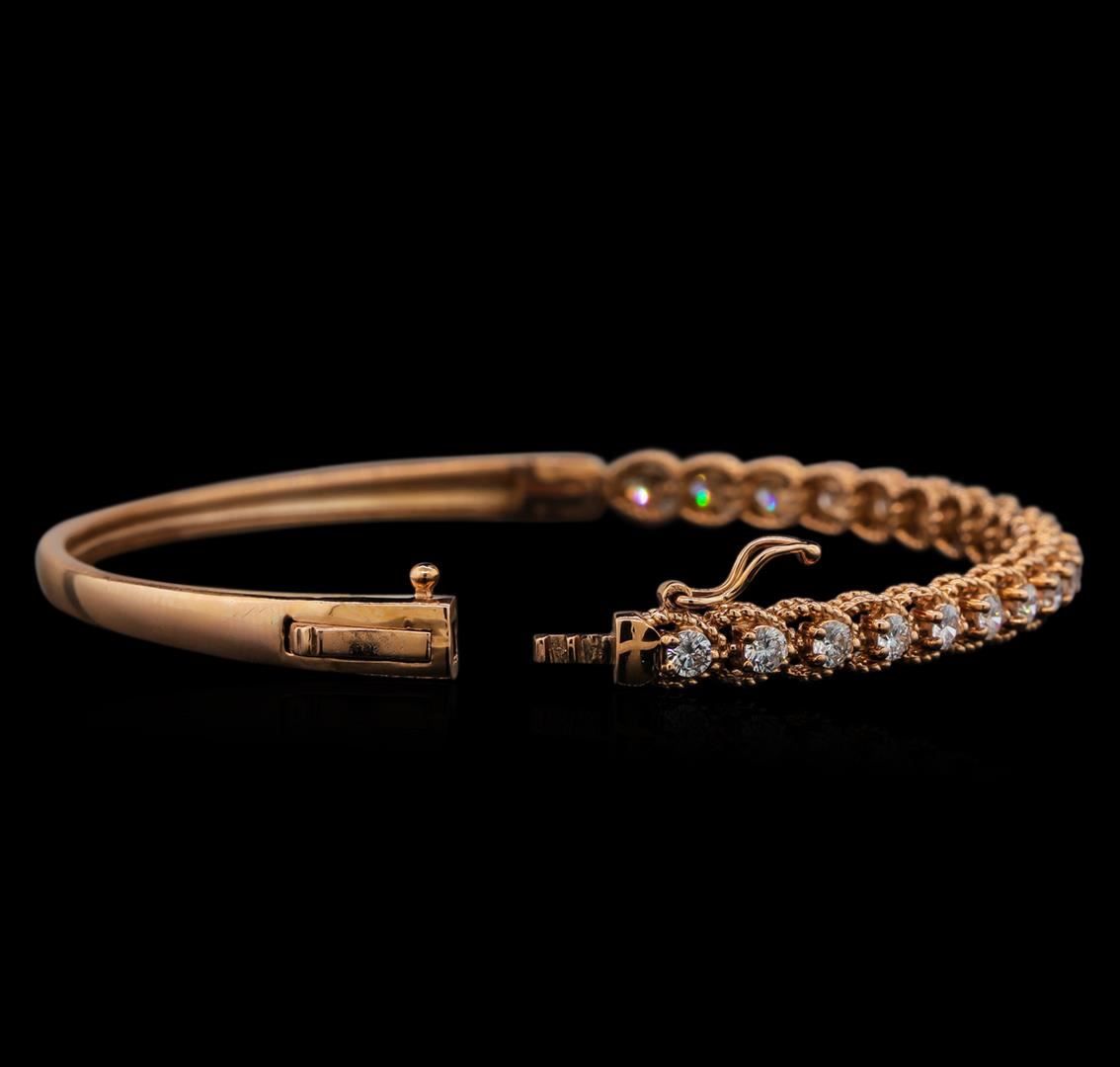 One electronically tested 14KT white gold ladies cast diamond bangle bracelet with a hidden box clasp with safety closer with a bright polish finish. Identified with markings of "14K". Condition is new. Containing: Twenty-One prong set round brilliant cut diamonds, measuring 2.50 - 2.50 x 1.50mm (depth est.) approximate total weight of 21 Stones = 1.33ct. Clarity: SI-1 to SI-2. Color: G - H, Cut is Good. All diamonds are graded in the mounting, unless otherwise stated. Total Weight of Diamonds 1.33ct. Total Weight of Bangle Bracelet 11.10 grams. GGL Appraised.