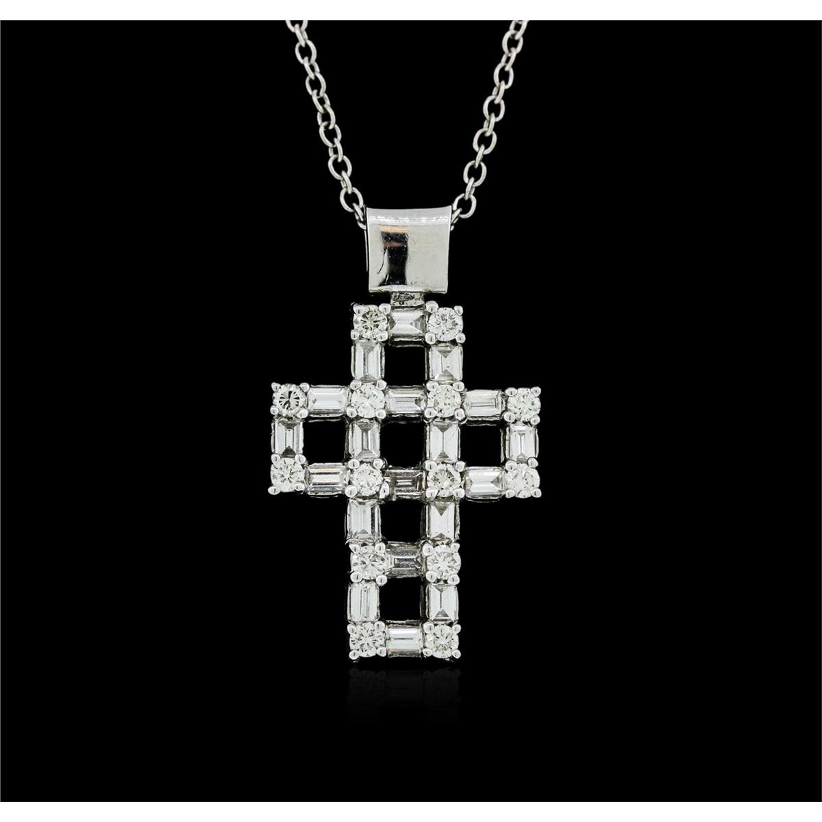 One cross pendant with chain featuring: 14KT white gold weighing 8.10 grams containing diamonds with a total weight of 1.33ct.