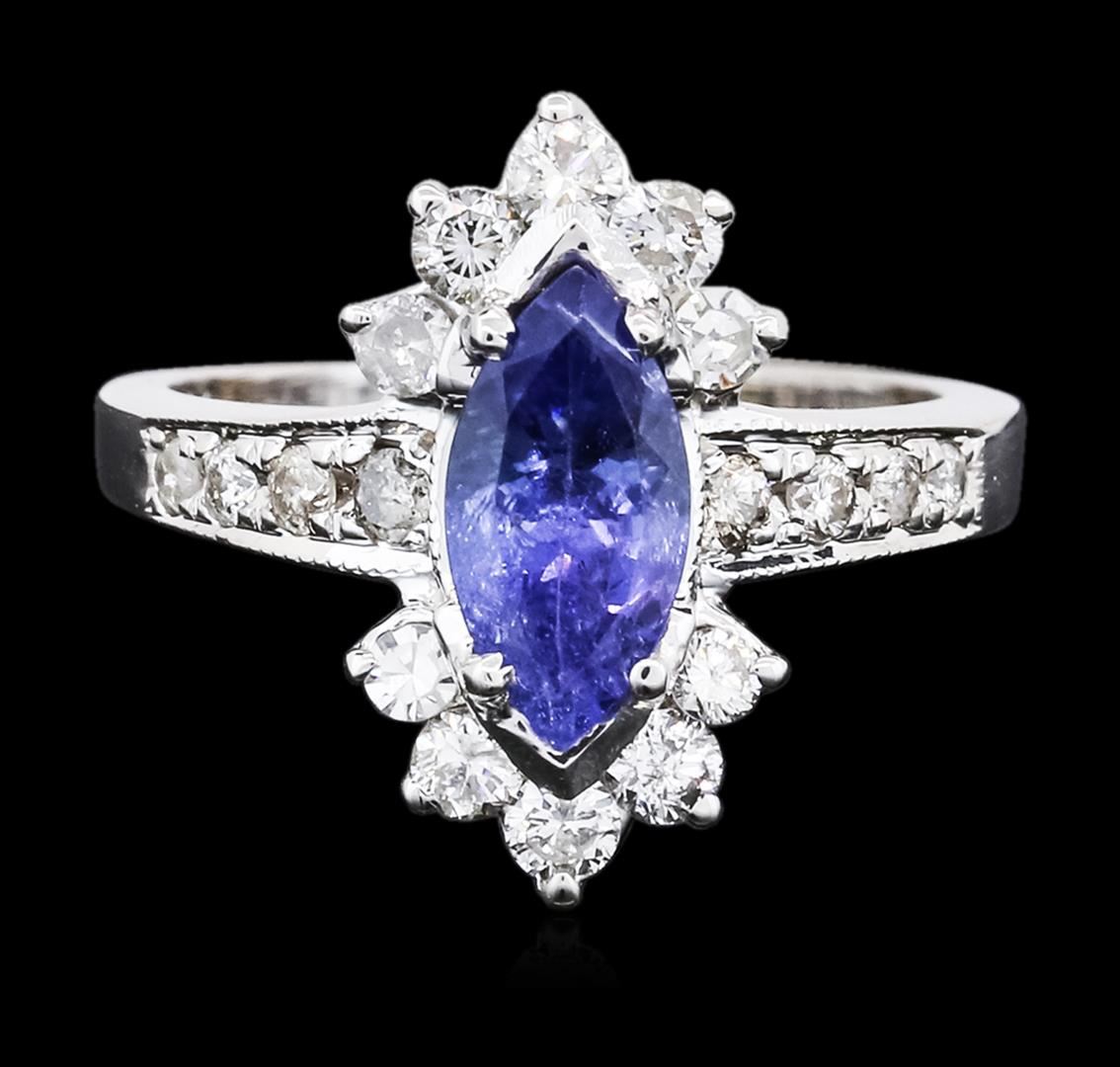 One ring featuring: 14KT white gold weighing 5.40 grams containing one tanzanite center stone with a total weight of 1.34ct and round diamonds with a total weight of 0.65cts.