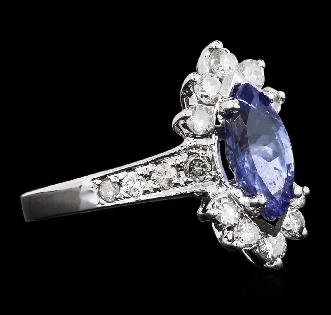 One ring featuring: 14KT white gold weighing 5.40 grams containing one tanzanite center stone with a total weight of 1.34ct and round diamonds with a total weight of 0.65cts.
