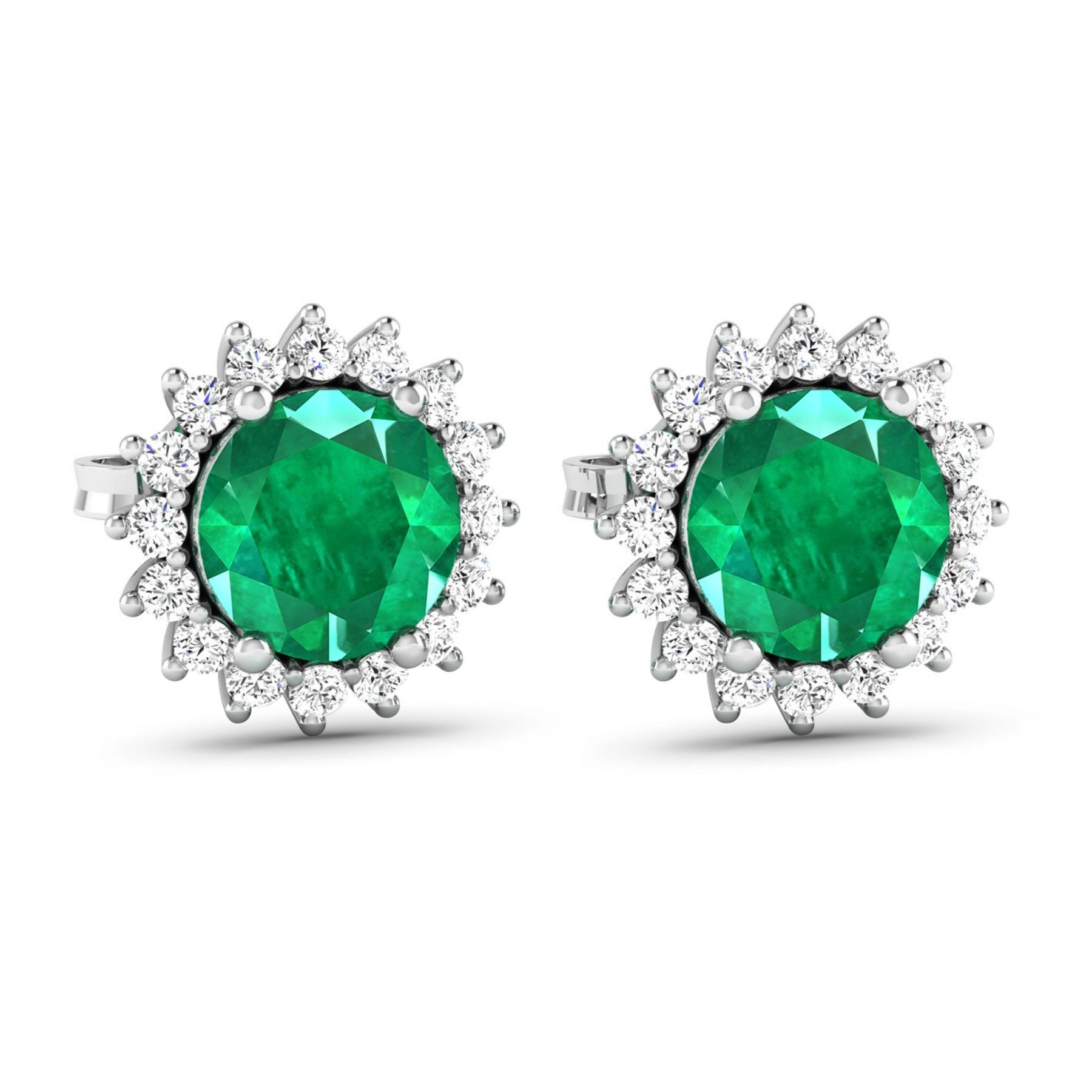 Zambian Emerald (AA) Round 6.00mm - 2Pcs + White Diamond F/C Round 1.30mm - 32Pcs ( Push-Post ) ( I1-I2/I color ) Total weight of gemstones is 1.36cts. Total Diamond weight is 0.32cts. Total weight of these earrings are 2.14 grams.