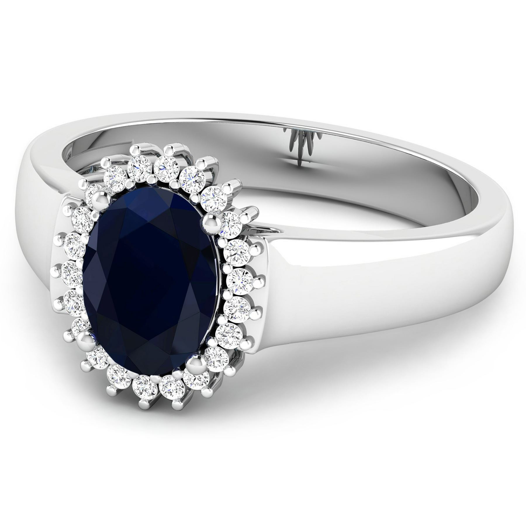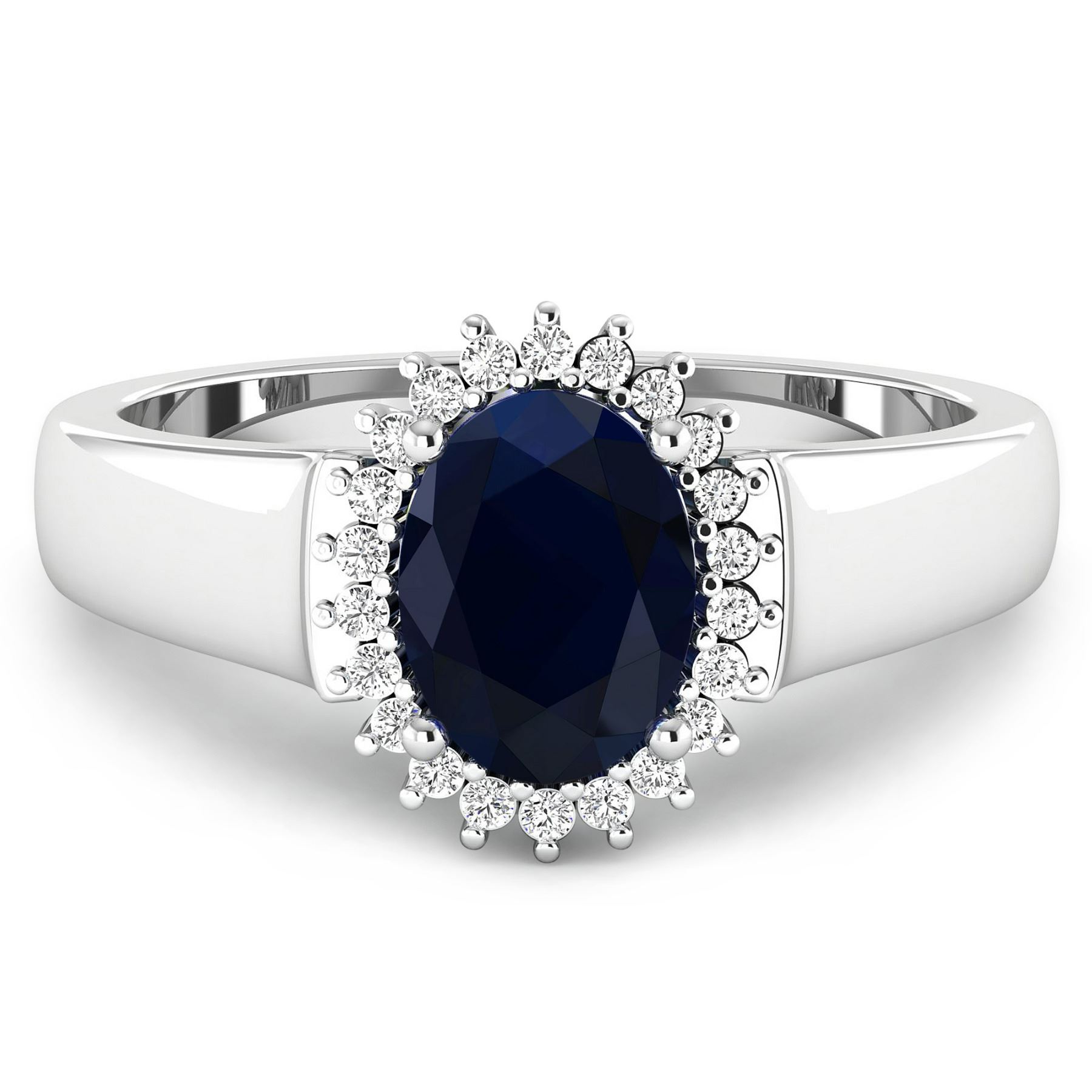 Blue Sapphire (AA) Oval 8x6mm - 1Pc + White Diamond F/C Round 1.00mm - 22Pcs (I1-I2/I color). Total weight of gemstone is 1.3cts. Total weight of Diamonds is 0.1cts. Total weight of this ring is 4.02 grams. Ring size 7.