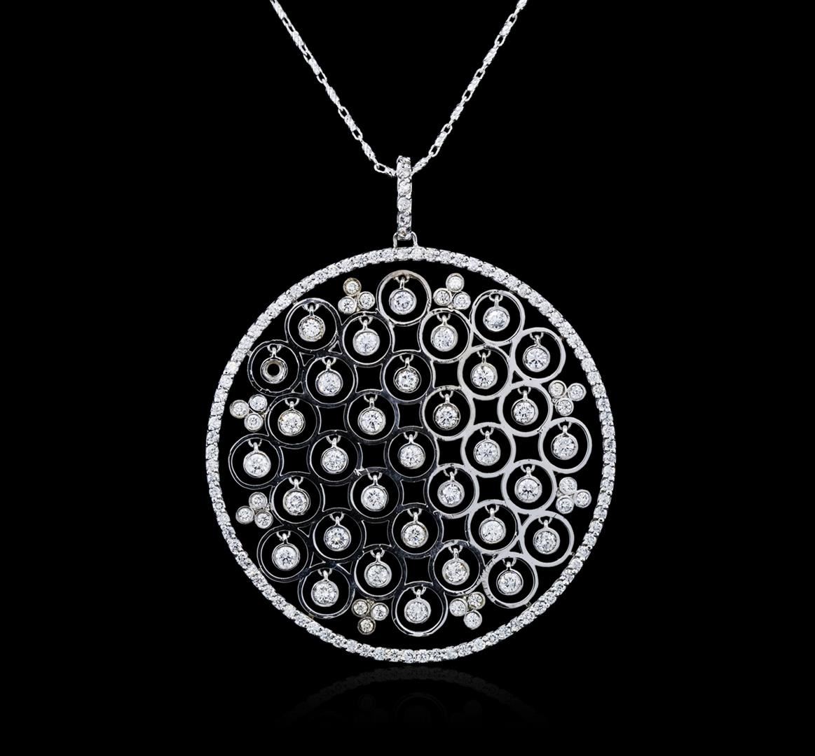 One electronically tested 14KT white gold ladies combination cast & assembled diamond pendant & chain 18.0" long, fancy link with a lobster claw clasp with a bright polish finish. Identified with markings of "K14". Condition is new. Containing: One Hundred Three prong set round brilliant cut diamonds, measuring 1.80 - 1.30 x 0.93mm (depth est.) approximate total weight of 103 Stones = 1.40ct. Clarity: SI-1 to SI-2. Color: I - J, Cut is Good. All diamonds are graded in the mounting, unless otherwise stated. Total Weight of Diamonds 1.40ct. Total Weight of Pendant & Chain 15.90 grams. GGL Appraised at $8,530.00.