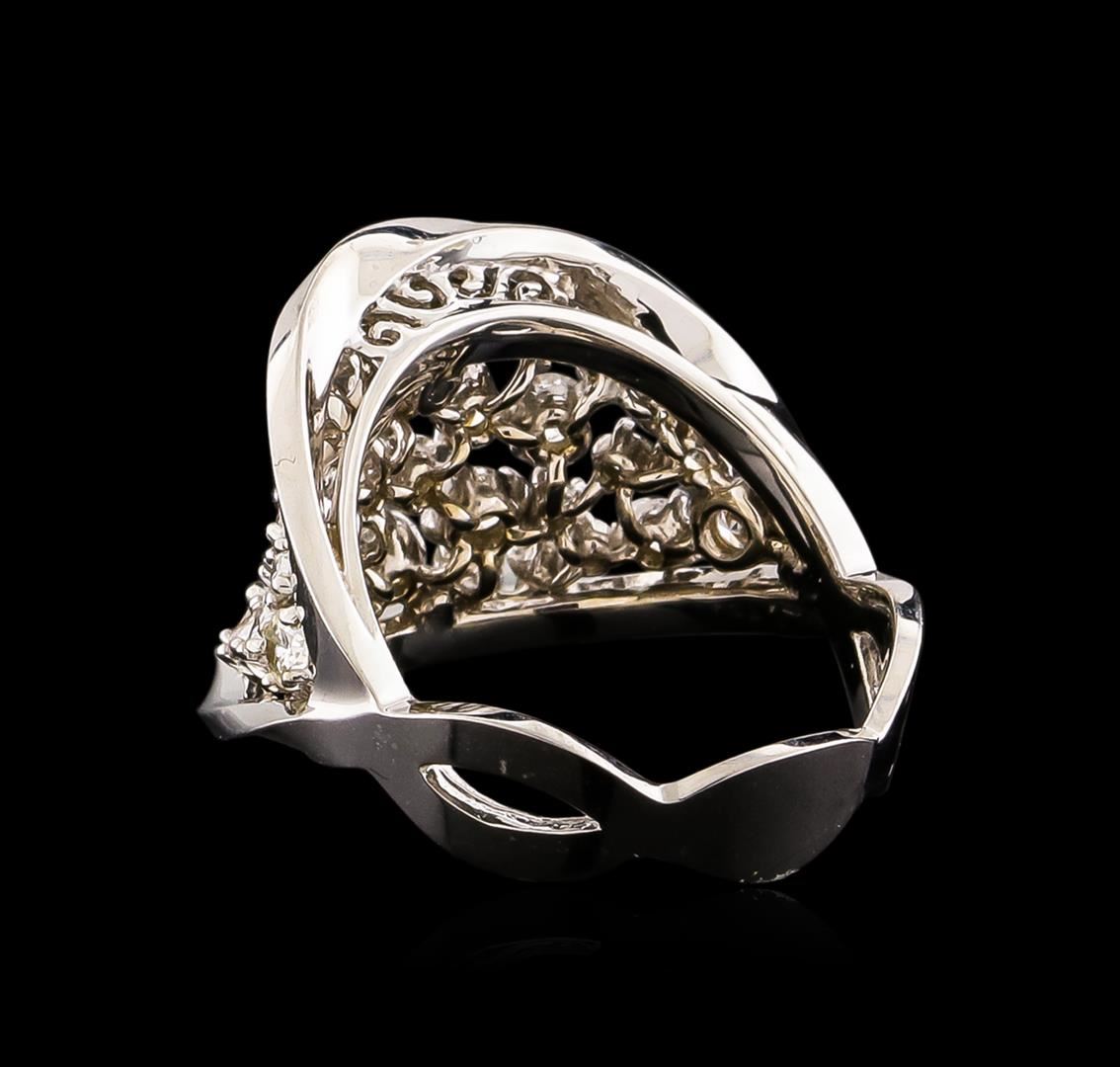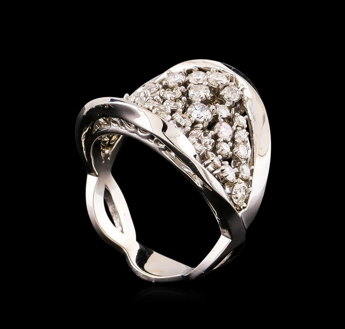 One electronically tested 14KT white gold ladies combination cast & assembled ring with a bright polish finish. Condition is new. Identified with markings of "585". Containing: Thirty-Eight prong set round brilliant cut diamonds, measuring 2.50 - 2.00 x 1.35mm (depth est.) approximate total weight of 38 Stones = 1.40ct. Clarity: SI-2 to I-2. Color: I - J, Cut is Good. All diamonds are graded in the mounting, unless otherwise stated. Total Weight of Diamonds 1.40ct. Total Weight of Ring 6.90 grams. GGL Appraised at $5,085.00.