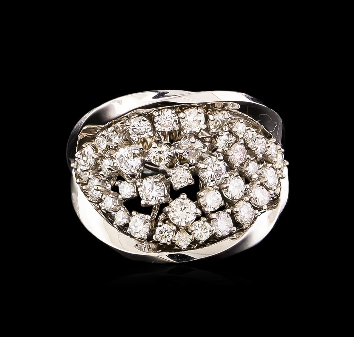 One electronically tested 14KT white gold ladies combination cast & assembled ring with a bright polish finish. Condition is new. Identified with markings of "585". Containing: Thirty-Eight prong set round brilliant cut diamonds, measuring 2.50 - 2.00 x 1.35mm (depth est.) approximate total weight of 38 Stones = 1.40ct. Clarity: SI-2 to I-2. Color: I - J, Cut is Good. All diamonds are graded in the mounting, unless otherwise stated. Total Weight of Diamonds 1.40ct. Total Weight of Ring 6.90 grams. GGL Appraised at $5,085.00.