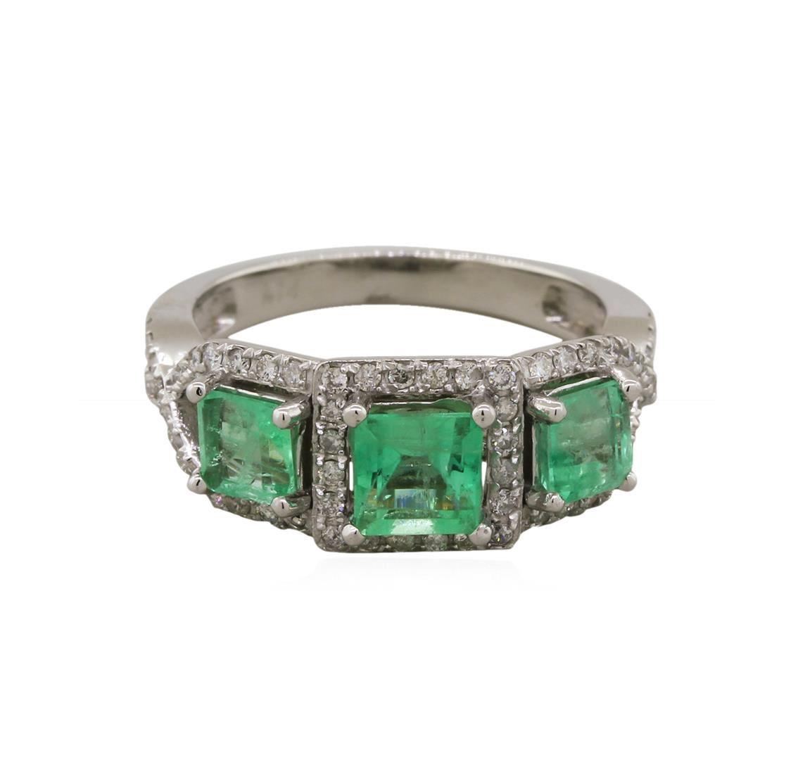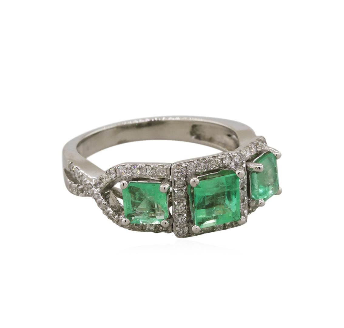 One ring featuring: 14KT white gold weighing 4.00 grams containing 3 emeralds with a total weight of 1.40ct and diamonds with a total weight of 0.35ct.