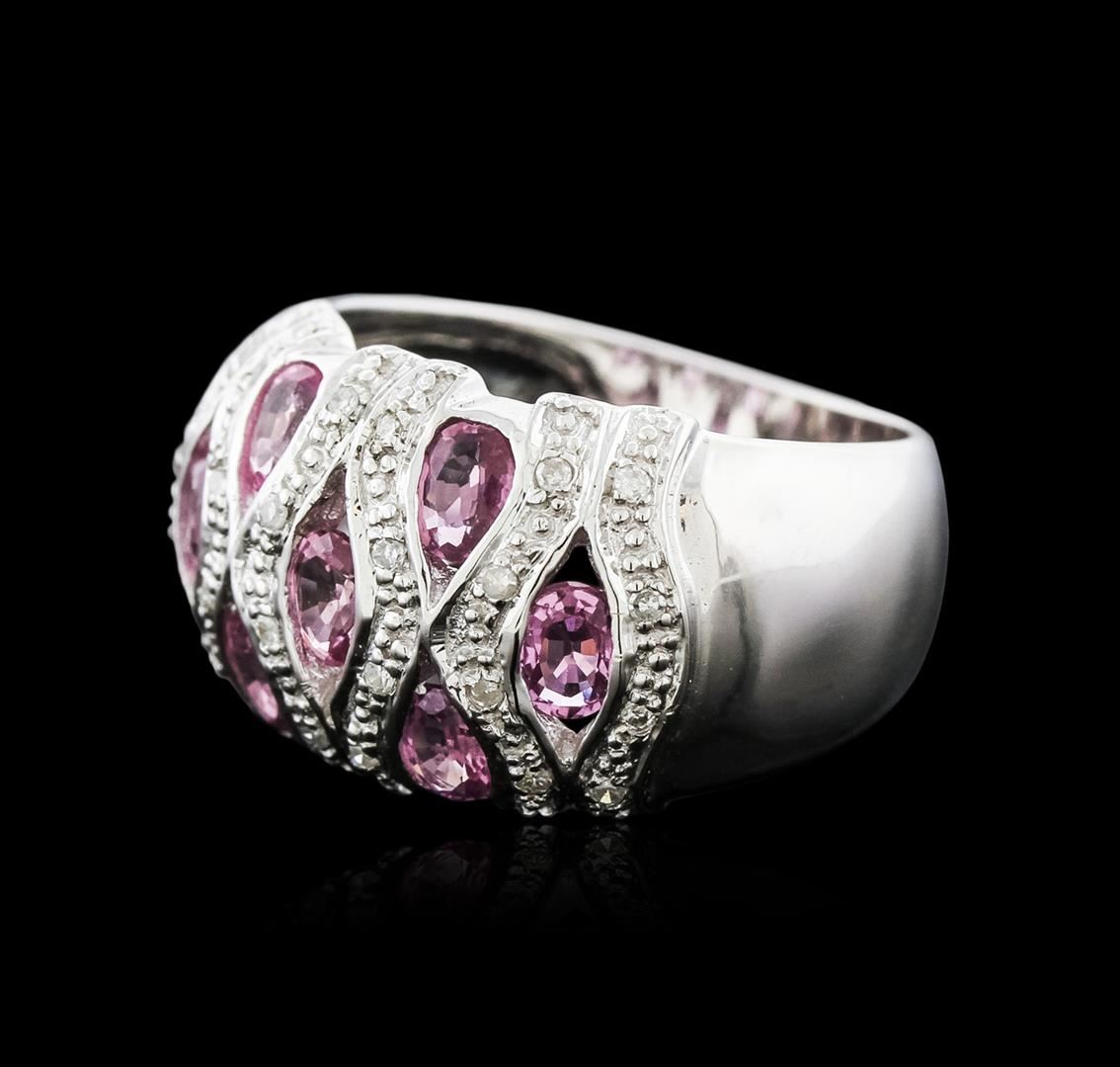 One ring featuring: 14KT white gold weighing 6.15 grams containing eight pink tourmalines weighing a total of 1.40ct and round diamonds weighing a total of 0.20ct.