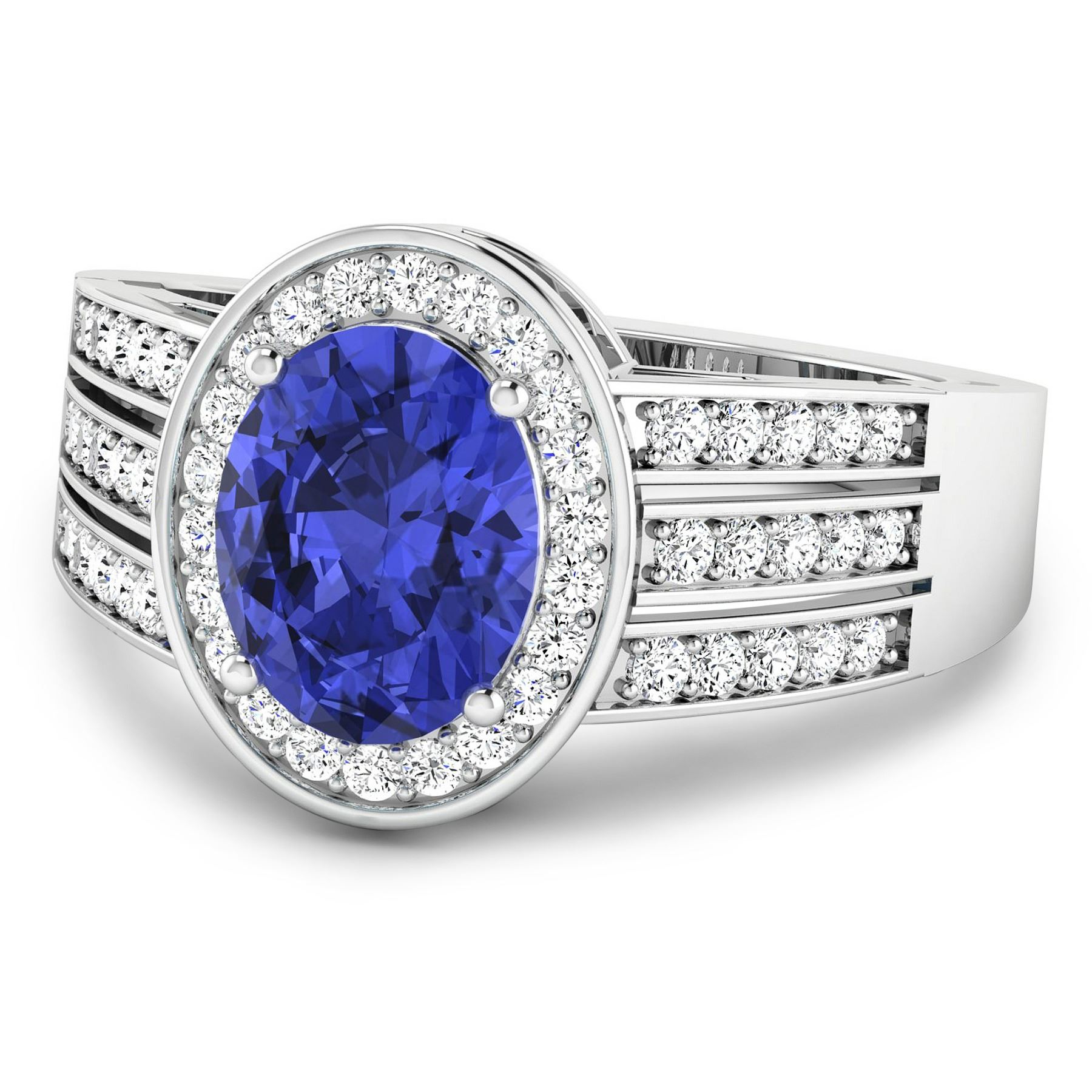 Tanzanite (AA+) Oval 9x7mm - 1Pc + White Diamond F/C Round 1.30mm - 32Pcs + White Diamond F/C Round 1.20mm - 6Pcs + White Diamond F/C Round 1.10mm - 6Pcs + White Diamond F/C Round 1.00mm - 8Pcs ( SI-2/HI ) Total weight of gemstone is 1.41cts. Total Diamond weight is 0.44cts. Total weight of this ring is 3.54 grams. Ring size 7.