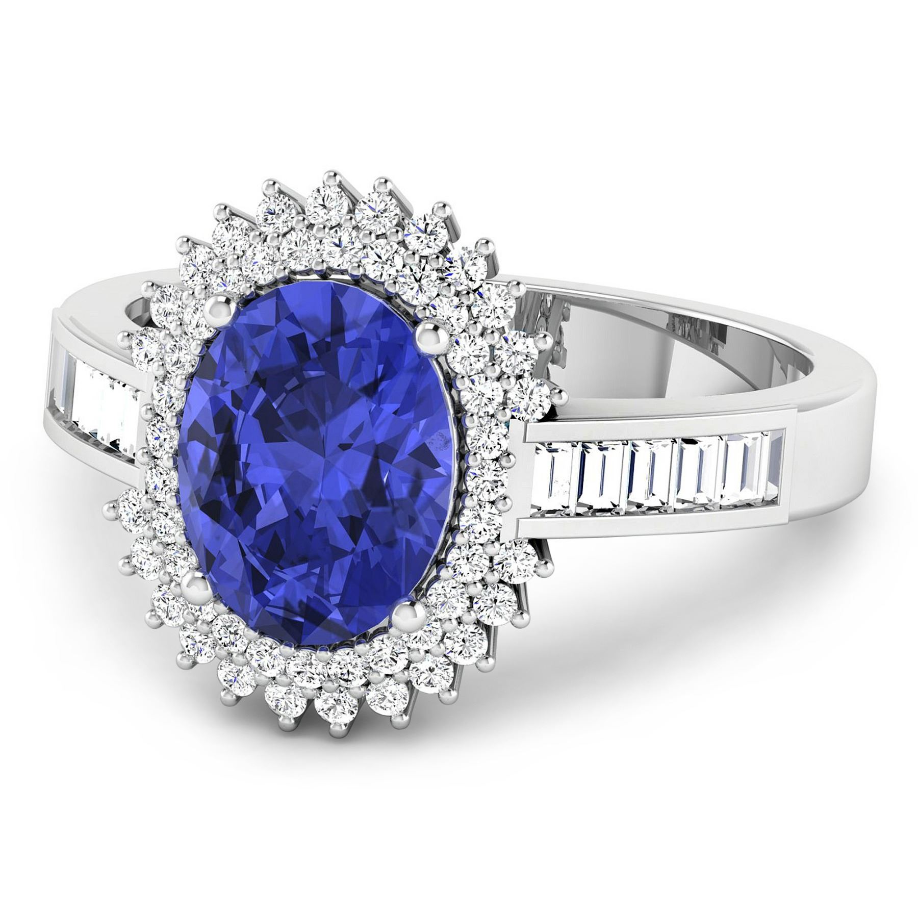 Tanzanite (AA+) Oval 9x7mm - 1Pc + White Diamond Baguette 2.00x1.50mm - 10Pcs + White Diamond F/C Round 1.00mm - 52Pcs ( SI-2/HI ) Total weight of gemstone is 1.41cts. Total Diamond weight is 0.52cts. Total weight of this ring is 3.35 grams. Ring size 7.