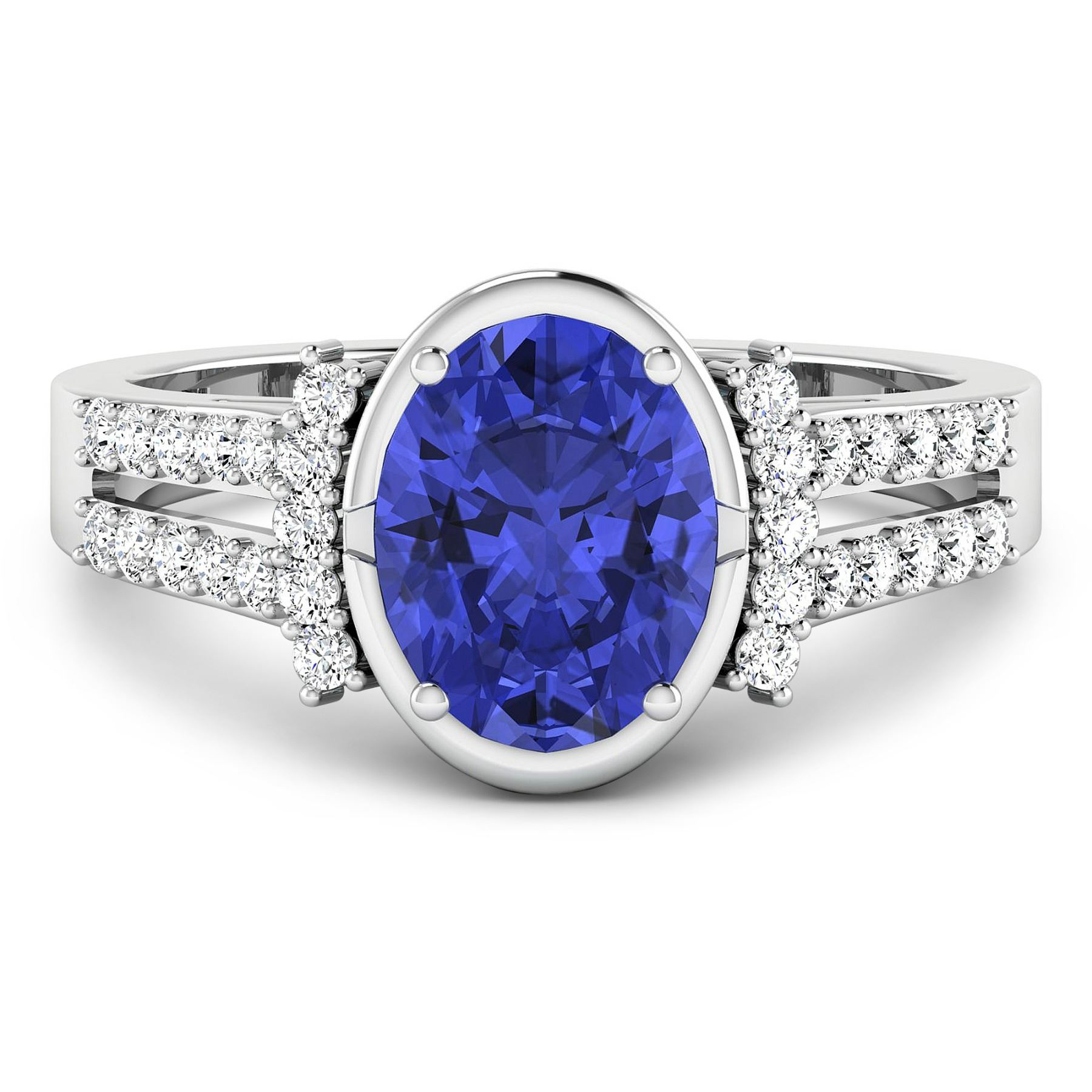 Tanzanite (AA+) Oval 9x7mm - 1Pc + White Diamond F/C Round 1.30mm - 30Pcs ( SI-2/HI ) Total weight of gemstone is 1.41cts. Total Diamond weight is 0.3cts. Total weight of this ring is 3.19 grams. Ring size 7.