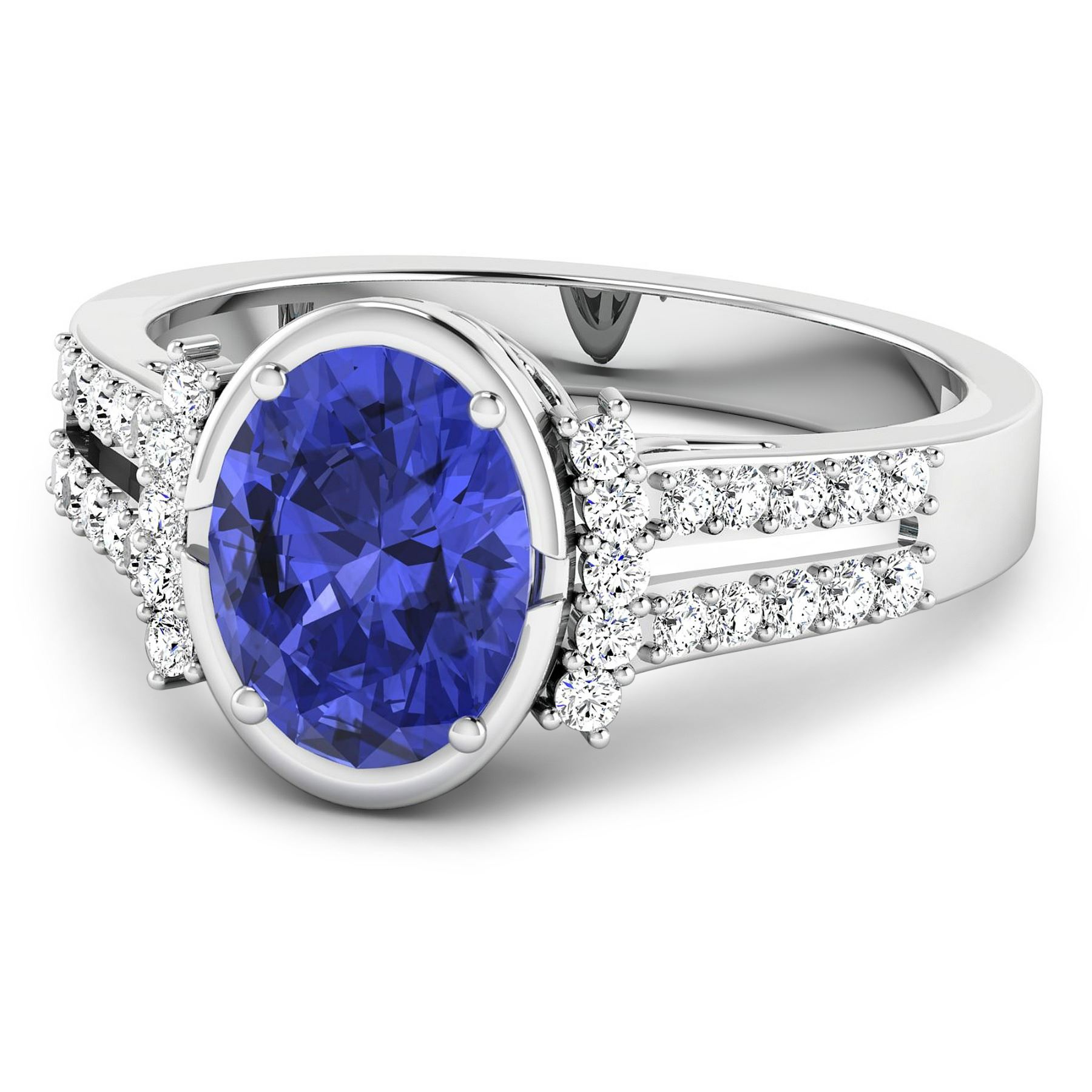 Tanzanite (AA+) Oval 9x7mm - 1Pc + White Diamond F/C Round 1.30mm - 30Pcs ( SI-2/HI ) Total weight of gemstone is 1.41cts. Total Diamond weight is 0.3cts. Total weight of this ring is 3.19 grams. Ring size 7.
