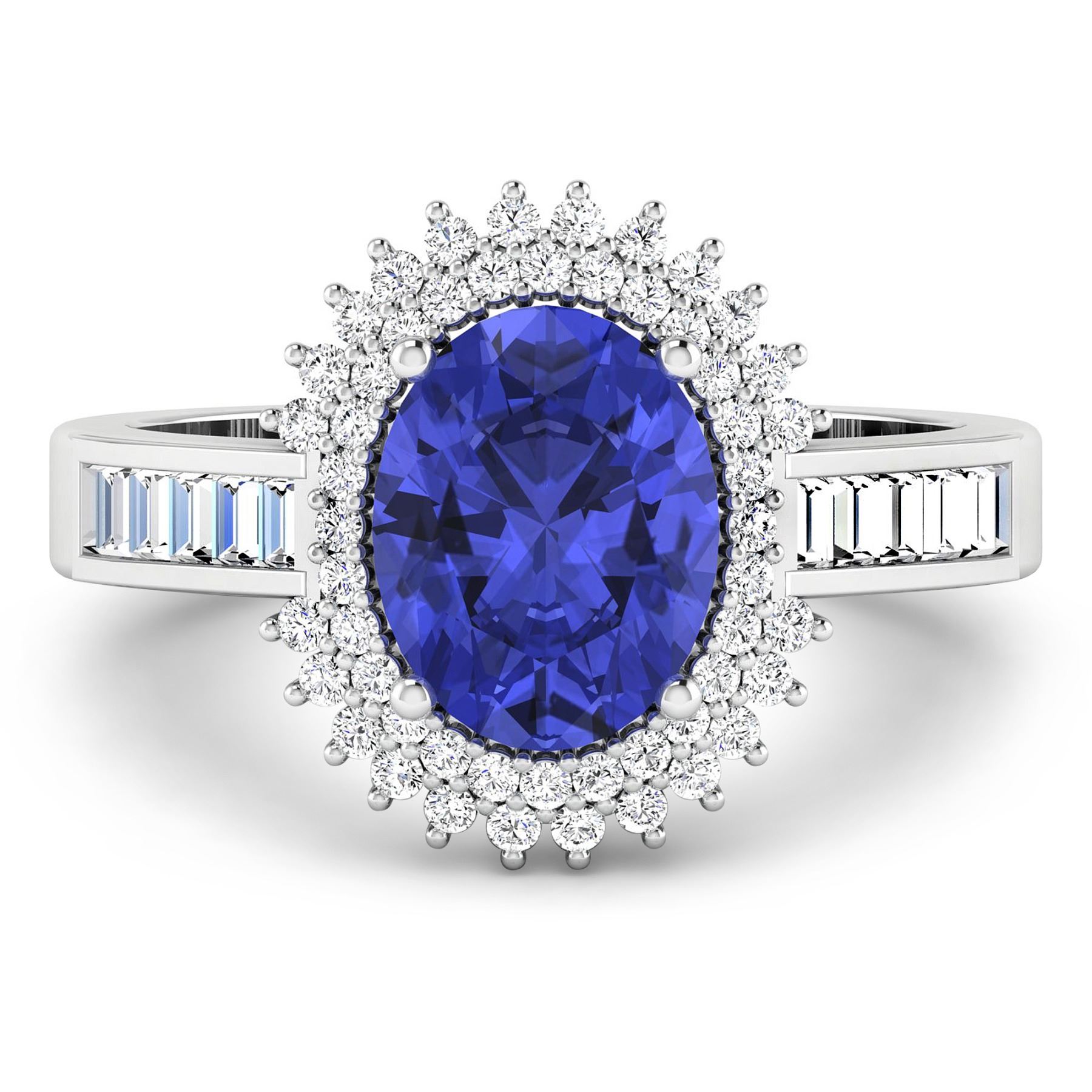 Tanzanite (AA+) Oval 9x7mm - 1Pc + White Diamond Baguette 2.00x1.50mm - 10Pcs + White Diamond F/C Round 1.00mm - 52Pcs ( SI-2/HI ) Total weight of gemstone is 1.41cts. Total Diamond weight is 0.52cts. Total weight of this ring is 3.35 grams. Ring size 7.