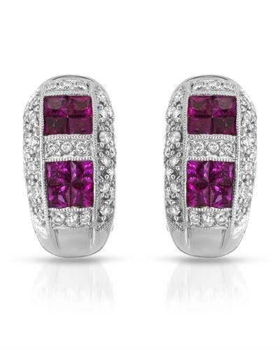 One 14KT White Gold 1.44ctw Ruby and Diamond Earrings. (16) Rubies with a total weight of 1.44cts. (62) Round Diamonds with a total weight of 0.54cts with a color of I and clarity of I-1. Total weight of these earrings are 7.15 grams.