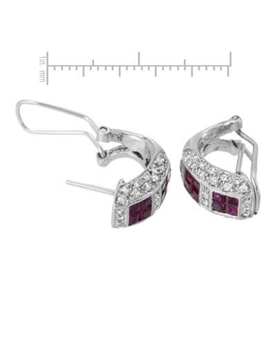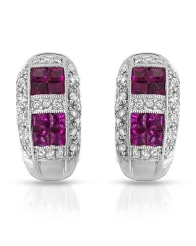 One 14KT White Gold 1.44ctw Ruby and Diamond Earrings. (16) Rubies with a total weight of 1.44cts. (62) Round Diamonds with a total weight of 0.54cts with a color of I and clarity of I-1. Total weight of these earrings are 7.15 grams.