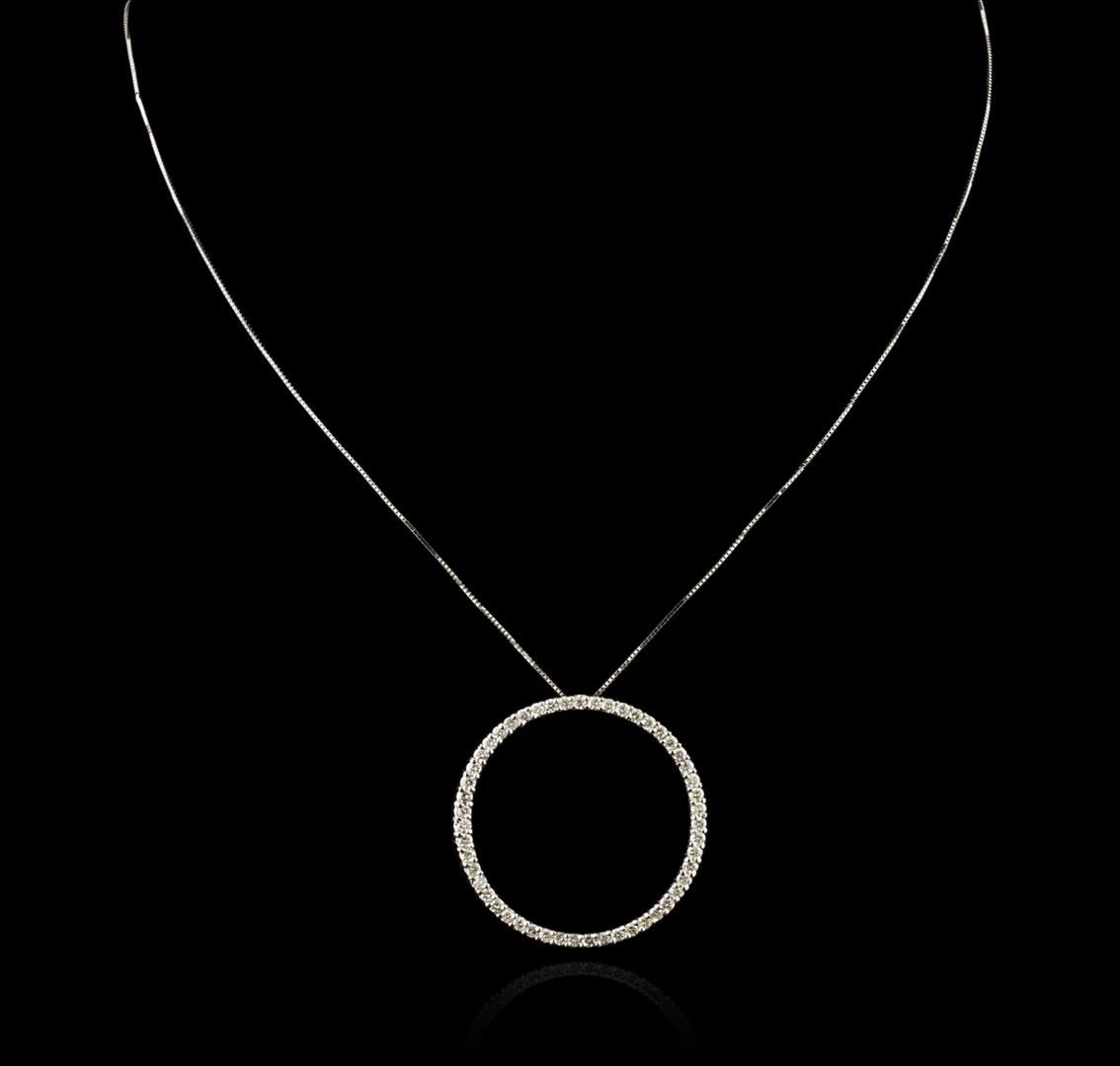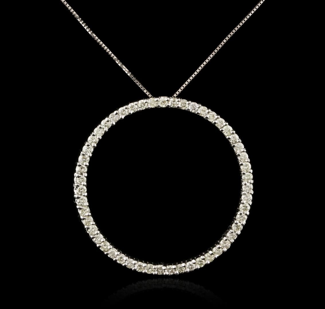 One pendant with chain featuring: 14KT white gold weighing 6.90 grams containing prong set round diamonds with a total weight of 1.45ct.