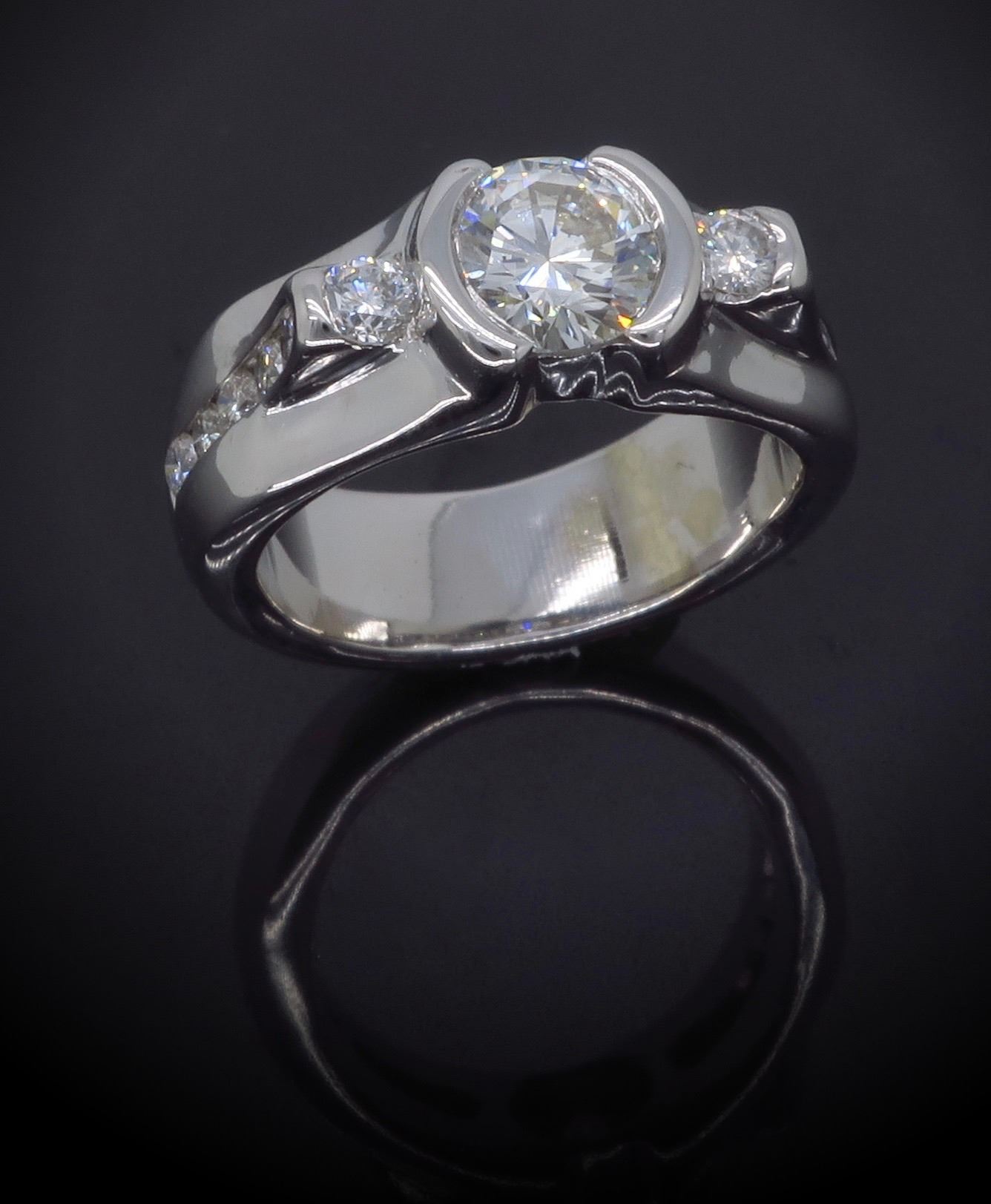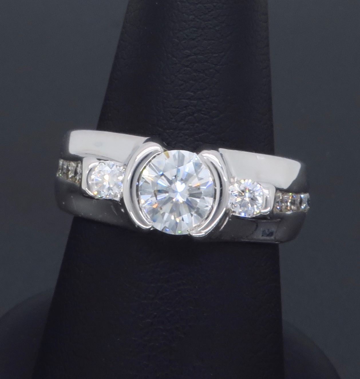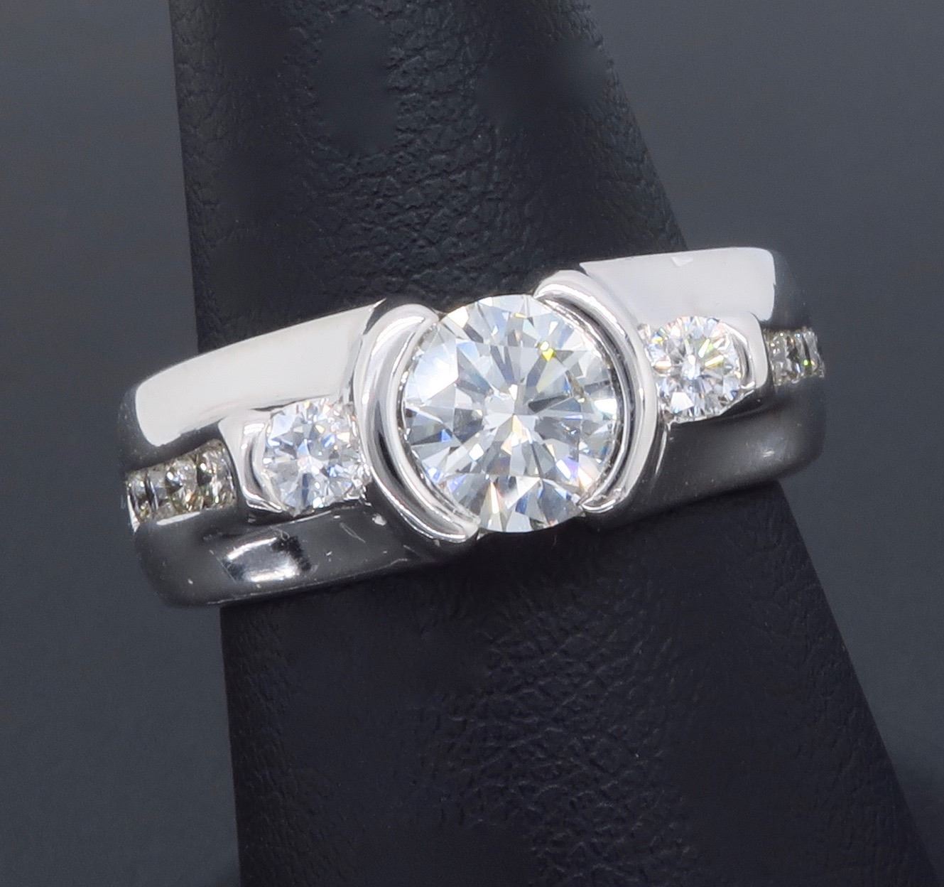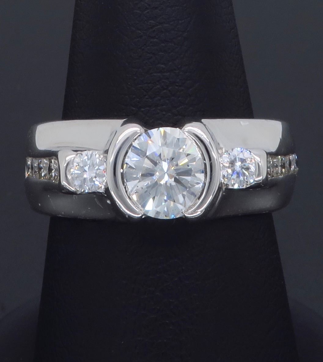 One 14KT White Gold 1.47ctw Diamond Ring. (1) Round center Diamond with a total weight of 1.02cts with a color of G-H and clarity of VS-2. Side diamonds with a total weight of 0.45cts. Total weight of this ring is 11.4 grams. Ring size is 6.5.