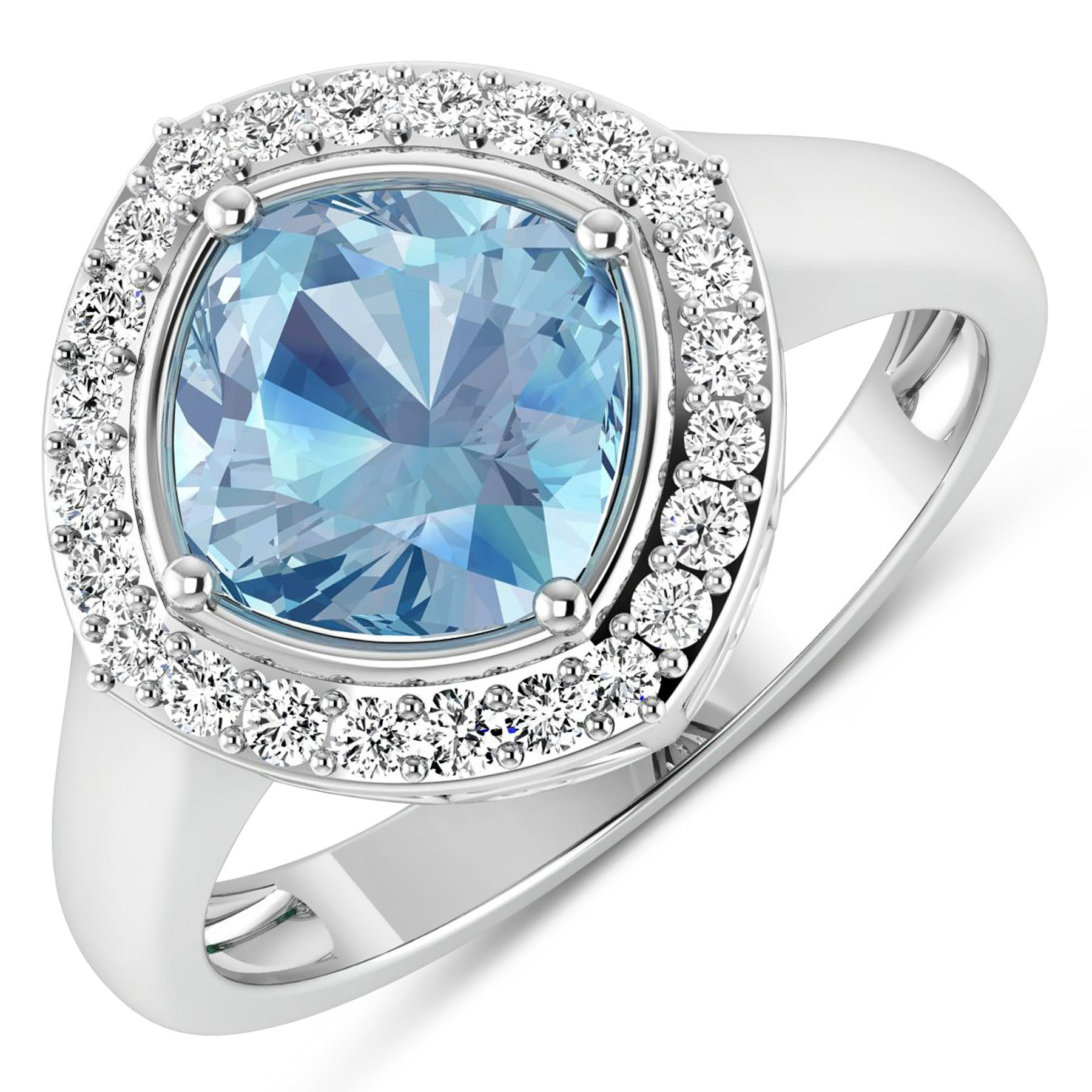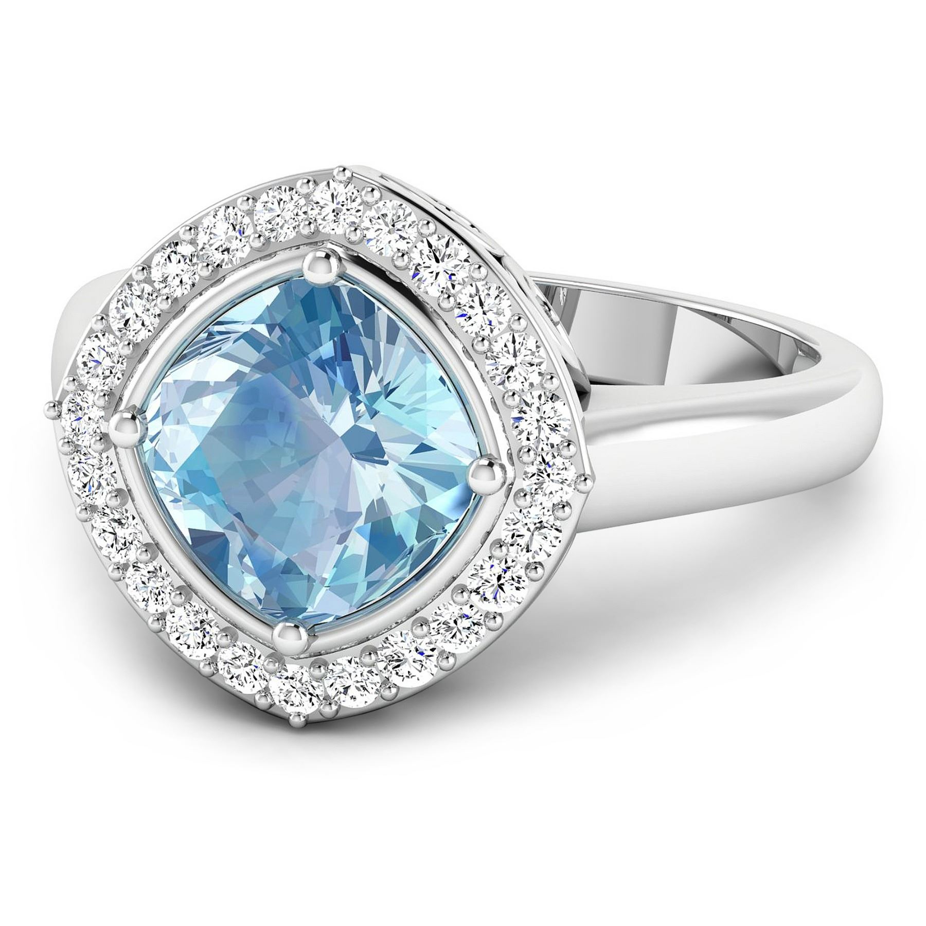 Aquamarine (AA+) Cushion 8.00mm - 1Pc + White Diamond F/C Round 1.30mm - 24Pcs ( SI-2/HI ) Total weight of gemstone is 1.48cts. Total Diamond weight is 0.24cts. Total weight of this ring is 3.19 grams. Ring size 7.