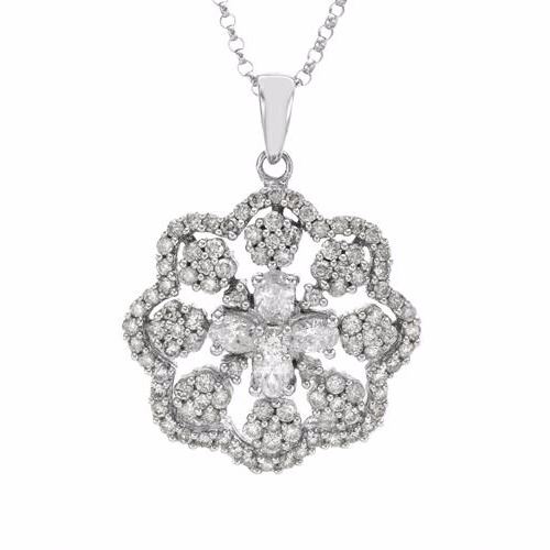 One 14KT White Gold 1.48ctw Diamond Pendant with Chain. (101) Diamonds with a total weight of 1.48cts with a color of I and clarity of SI-1 to SI-2. Total weight of this pendant with chain is 5.4 grams.
