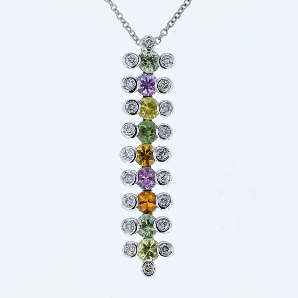 14KT White Gold 1.48ctw Multi Color Sapphire and Diamond Pendant with Chain