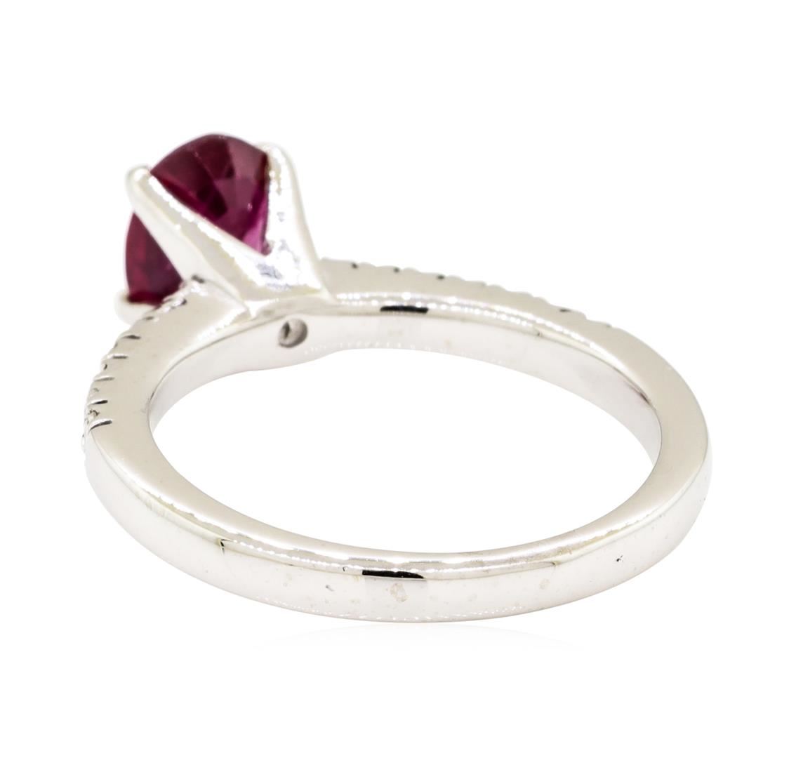 One ring featuring: 14KT white gold weighing 4.4 grams containing one ruby weighing 1.49ct and diamonds weighing 0.30ctw. The ring is a size 7.