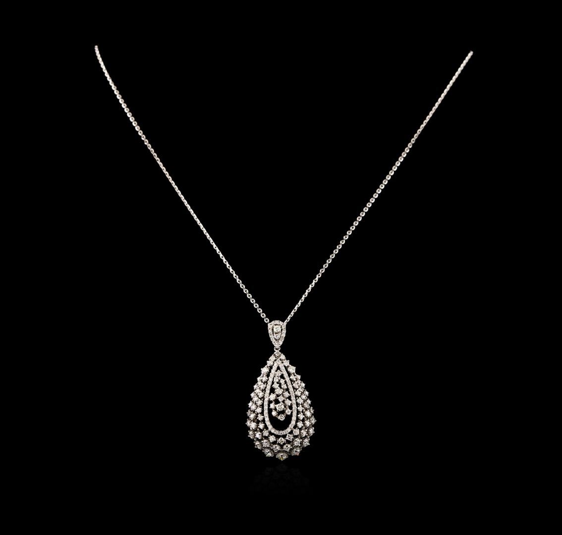One electronically tested 14KT white gold ladies combination cast & assembled diamond pendant & chain 18.0" long, large cable link with a lobster claw clasp with a bright polish finish. Identified with markings of "K14". Condition is new. Containing: One Hundred Thirty-Three prong set round brilliant cut diamonds, measuring 2.10 - 1.10 x 0.96mm (depth est.) approximate total weight of 133 Stones = 1.50ct. Clarity: I-1 to I-2. Color: I - J, Cut is Good. All diamonds are graded in the mounting, unless otherwise stated. Total Weight of Diamonds 1.50ct. Total Weight of Pendant & Chain 9.20 grams. GGL Appraised at $5,350.00.