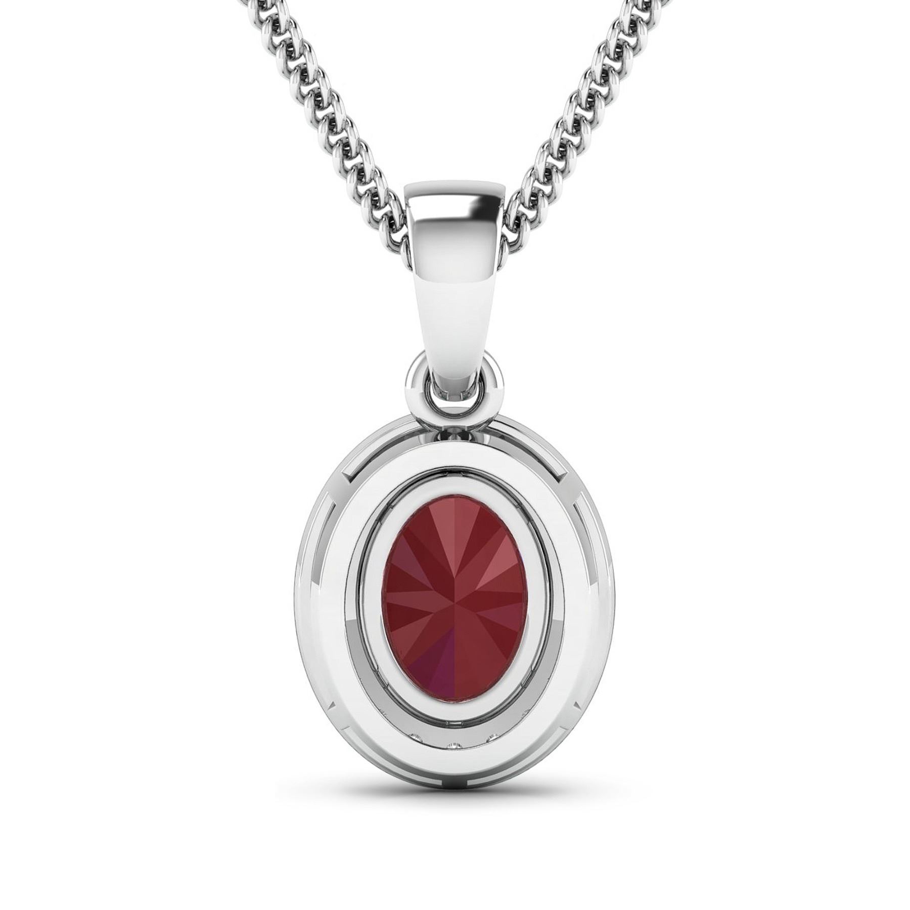 1 Ruby with a total weight of 1.50cts. Ruby (AA) Oval 8x6mm - 1Pc + White Diamond F/C Round 1.20mm - 22Pcs + White Diamond F/C Round 1.10mm - 1Pc ( I1-I2/I color ). Diamonds with a total weight of 0.18cts. Total weight of pendant with chain is 1.70 grams. 16 inch chain.