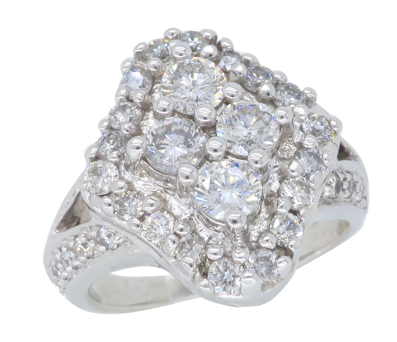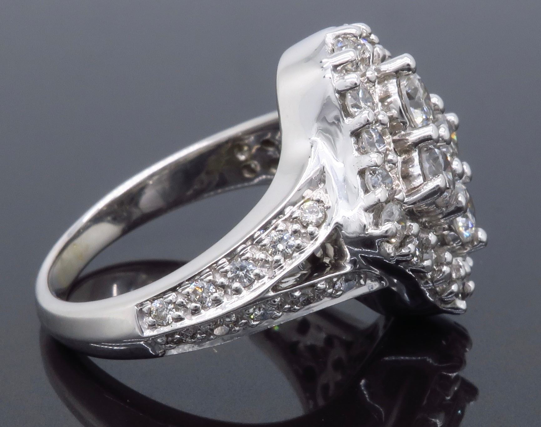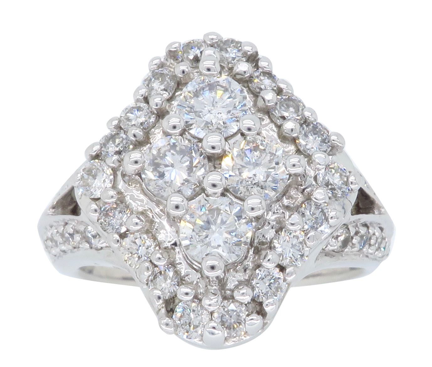 One 14KT White Gold 1.50ctw Diamond Ring. Round Diamonds with a total weight of 1.50cts with a color of G-H and clarity of SI-1. Total weight of this ring is 8.7 grams.