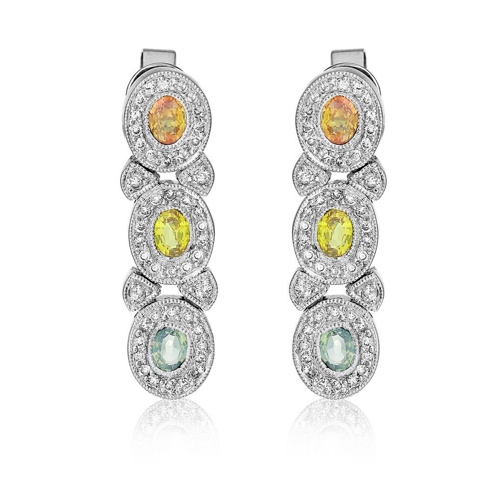 14KT White Gold 1.50ctw Multi Color Sapphire and Diamond Earrings