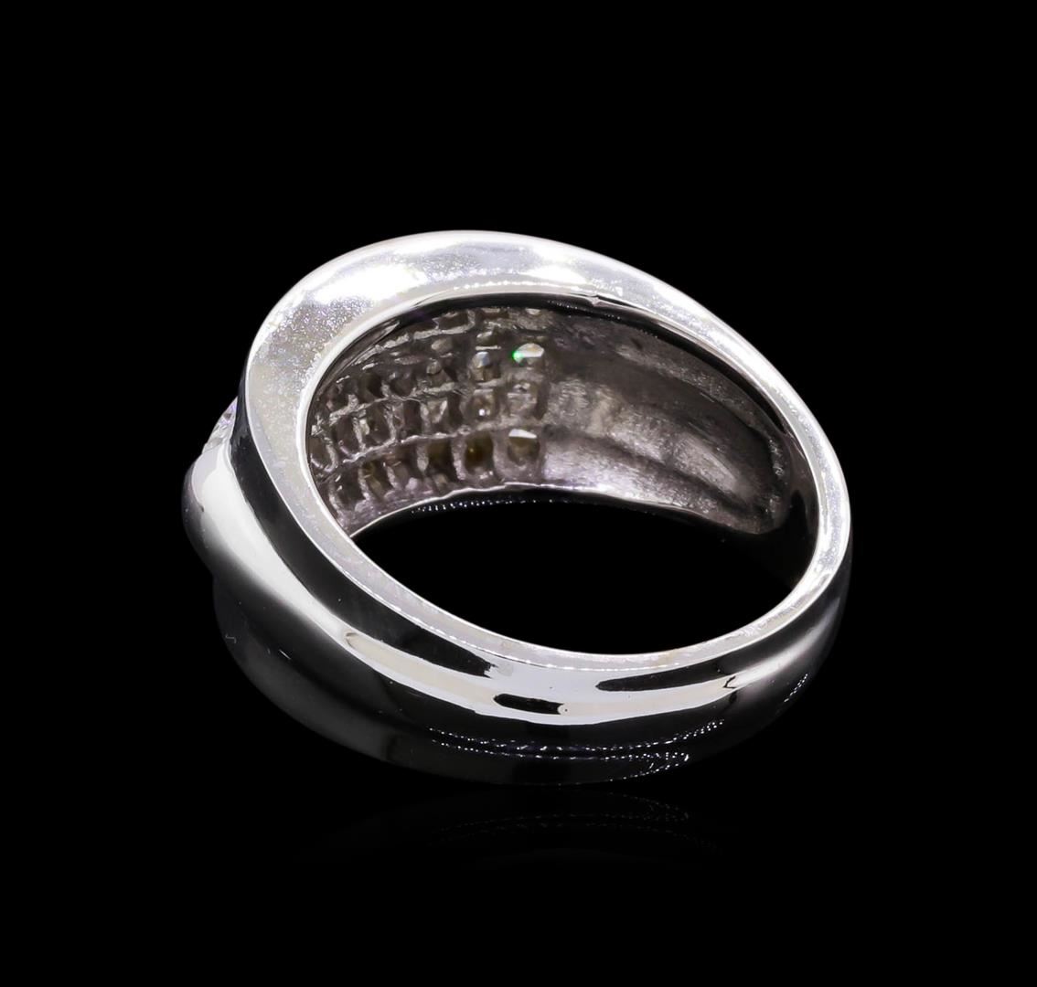 One electronically tested 14KT white gold man's combination cast & assembled ring with a bright polish finish. Condition is new. Identified with markings of "14K". Containing: Fifty pave' set princess cut diamonds, measuring 1.90 x 1.60 x 1.21mm (depth est.) approximate. Total Weight of 50 Stones = 1.51ct. Clarity: I-1 to I-2. Color: H - J, Cut is Good. Total Weight of Diamonds 1.51ct. Total Weight of Ring 8.30gm. GGL Appraised at $5,175.00.