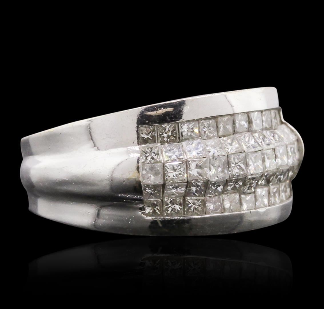 One electronically tested 14KT white gold man's combination cast & assembled ring with a bright polish finish. Condition is new. Identified with markings of "14K". Containing: Fifty pave' set princess cut diamonds, measuring 1.90 x 1.60 x 1.21mm (depth est.) approximate. Total Weight of 50 Stones = 1.51ct. Clarity: I-1 to I-2. Color: H - J, Cut is Good. Total Weight of Diamonds 1.51ct. Total Weight of Ring 8.30gm. GGL Appraised at $5,175.00.