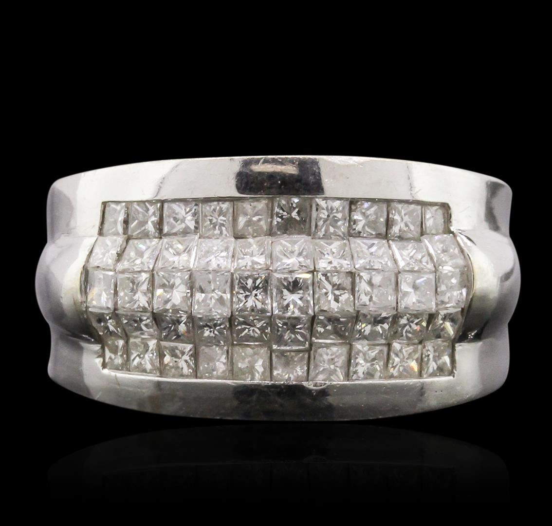 One electronically tested 14KT white gold man's combination cast & assembled ring with a bright polish finish. Condition is new. Identified with markings of "14K". Containing: Fifty pave' set princess cut diamonds, measuring 1.90 x 1.60 x 1.21mm (depth est.) approximate. Total Weight of 50 Stones = 1.51ct. Clarity: I-1 to I-2. Color: H - J, Cut is Good. Total Weight of Diamonds 1.51ct. Total Weight of Ring 8.30gm. GGL Appraised at $5,175.00.
