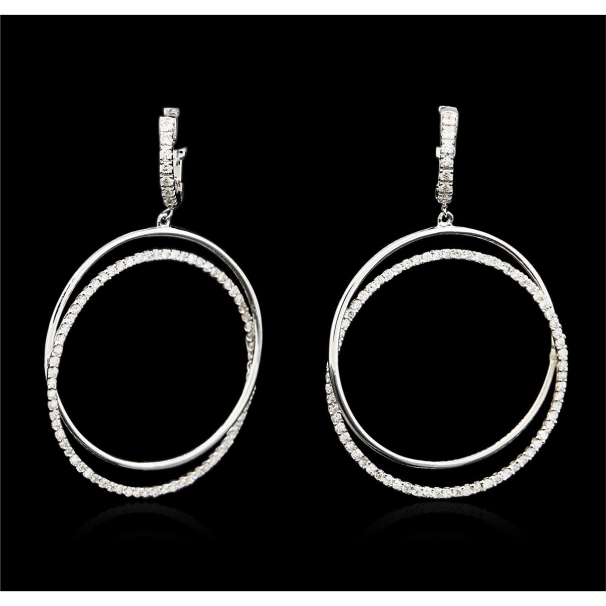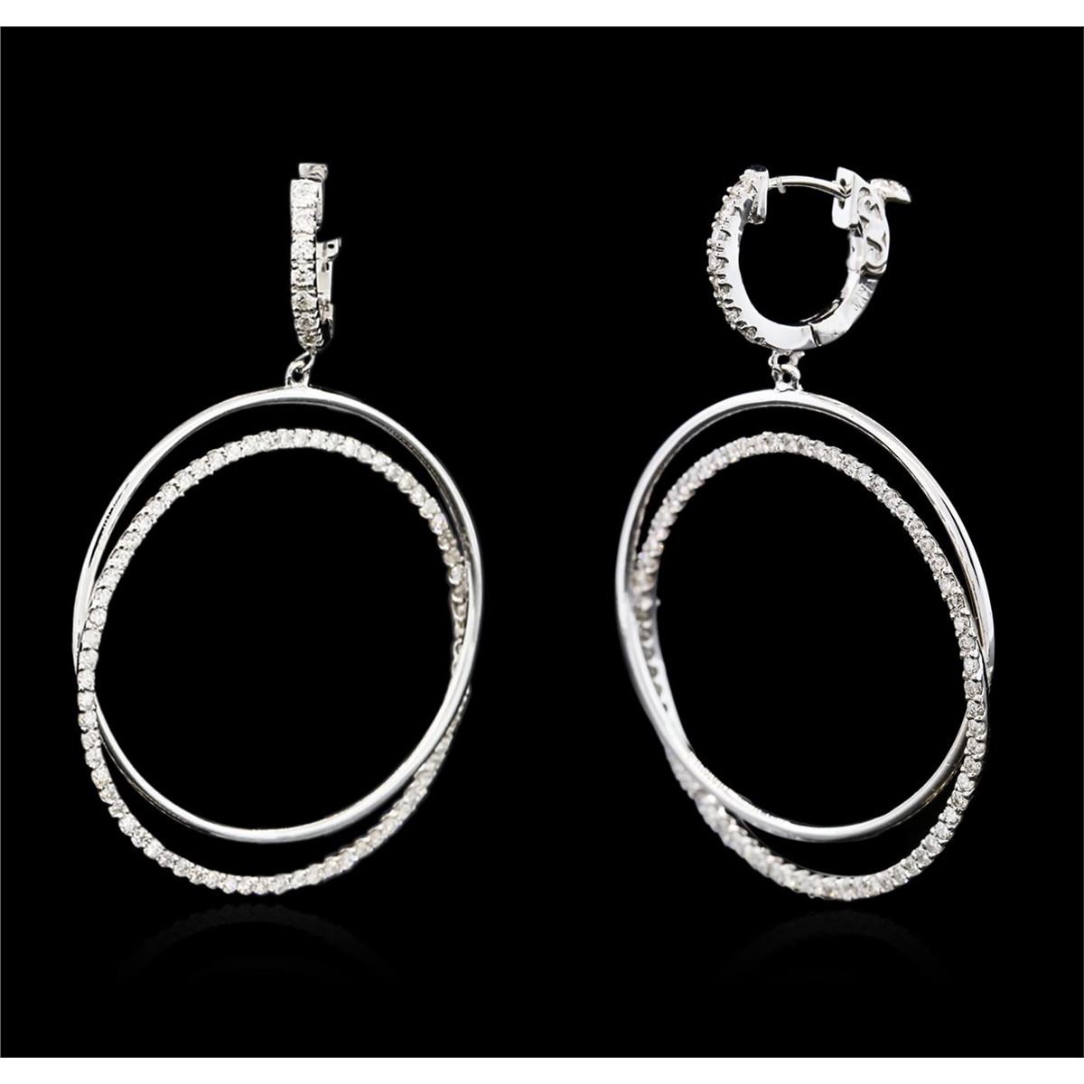 One pair electronically tested 14KT white gold ladies cast diamond earrings with hinged clip backs with a bright polish finish. Identified with markings of "K14". Condition is new. Containing: One Hundred Fifty-Two prong set round brilliant cut diamonds, measuring 1.40 - 1.40 x 0.84mm (depth est.) approximate total weight of 152 Stones = 1.52ct. Clarity: I-1 to I-2. Color: I - J, Cut is Good. All diamonds are graded in the mounting, unless otherwise stated. Total Weight of Diamonds 1.52ct. Total Weight of Earrings 8.30 grams. GGL Appraised at $5,710.00.