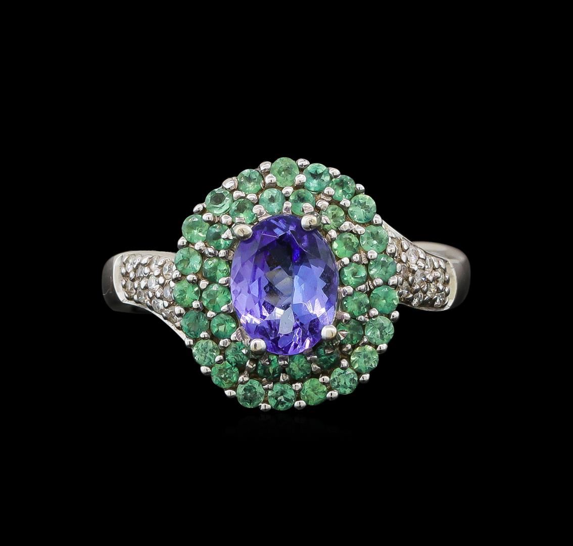 14KT White Gold 1.53 ctw Tanzanite, Emerald and Diamond Ring