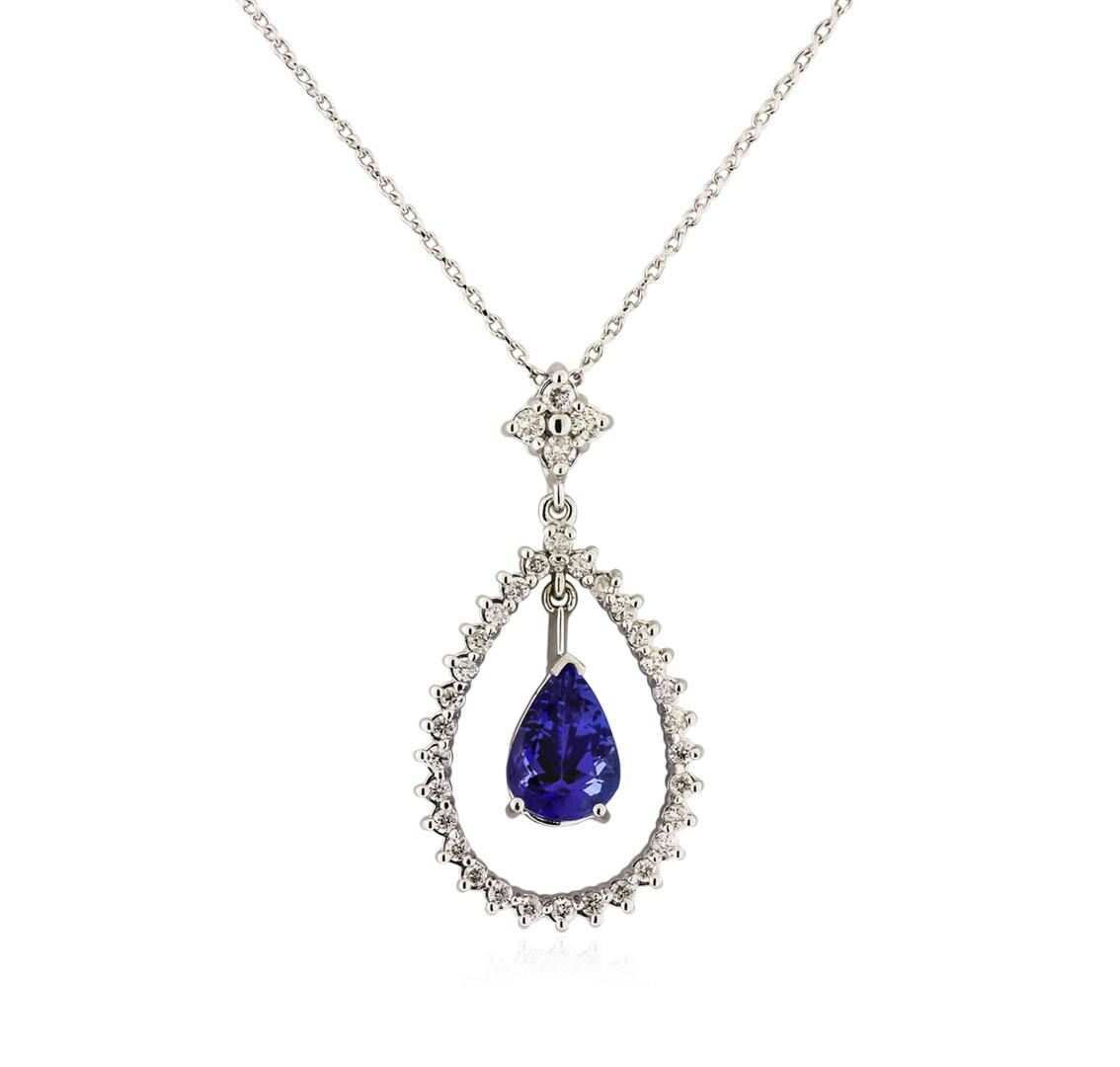 14KT White Gold 1.53ct Tanzanite and Diamond Pendant With Chain