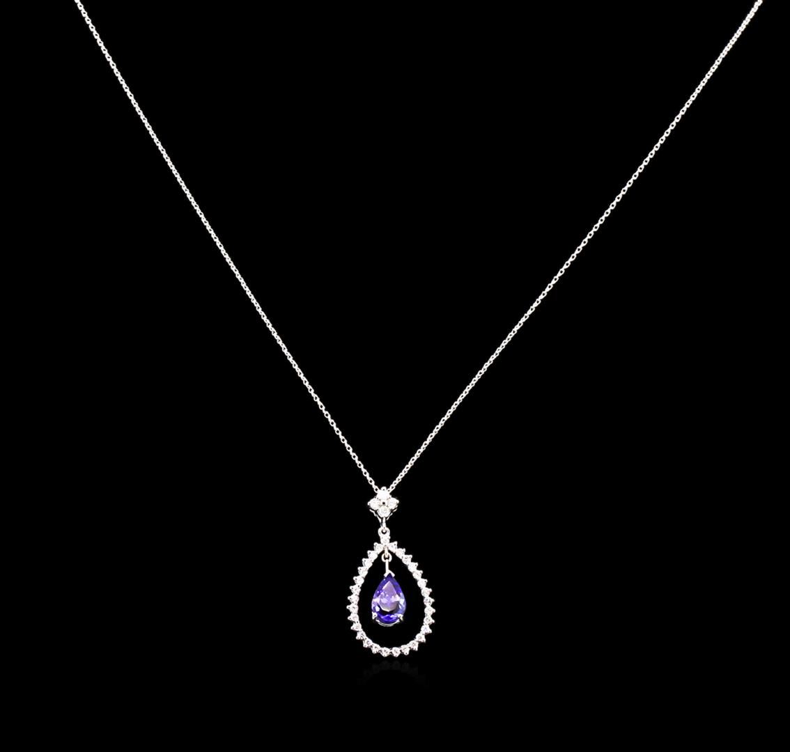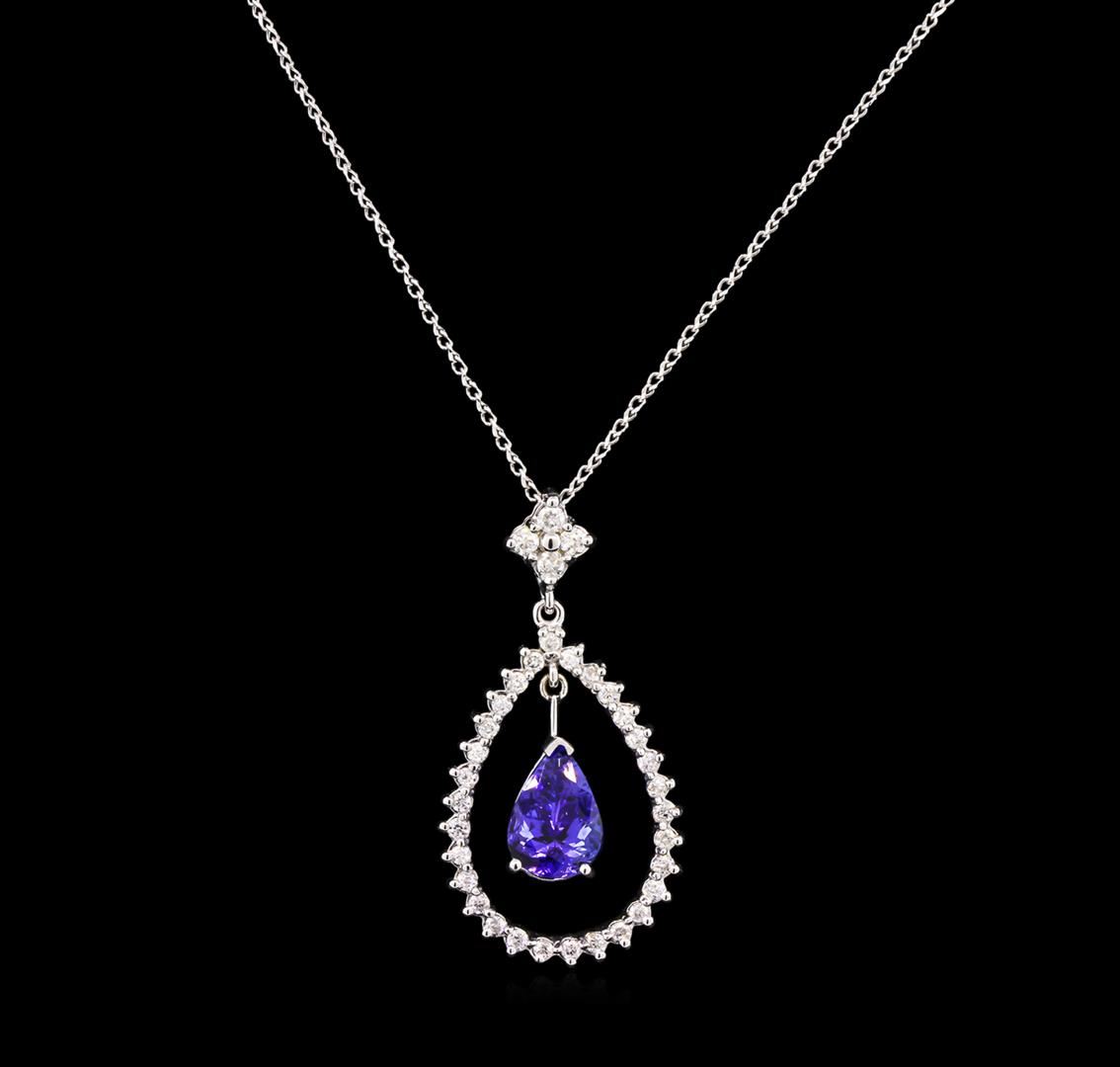 14KT White Gold 1.53ct Tanzanite and Diamond Pendant With Chain