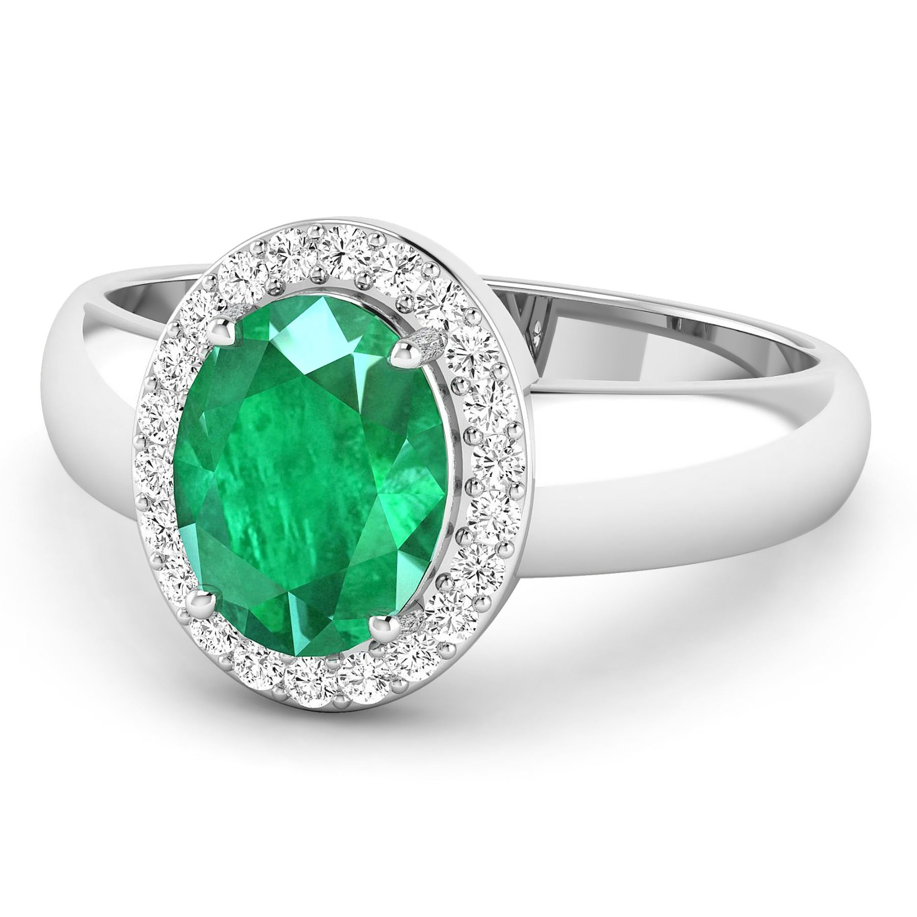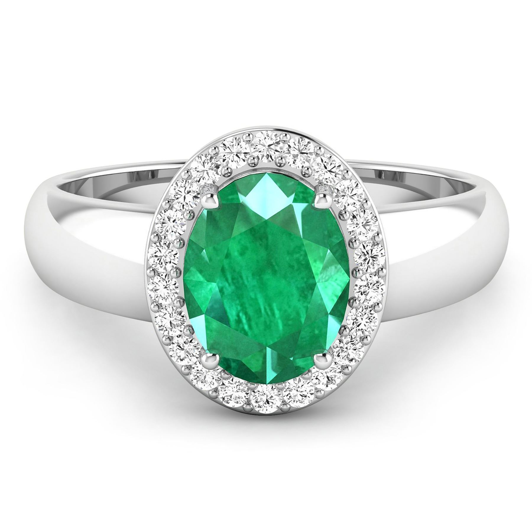 Zambian Emerald (AA) Oval 9x7mm - 1Pc + White Diamond F/C Round 1.30mm - 22Pcs (I1-I2/I color) ( With J Back ). Total weight of gemstone is 1.53cts. Total weight of Diamonds is 0.22cts. Total weight of this ring is 4.57 grams. Ring size 7.