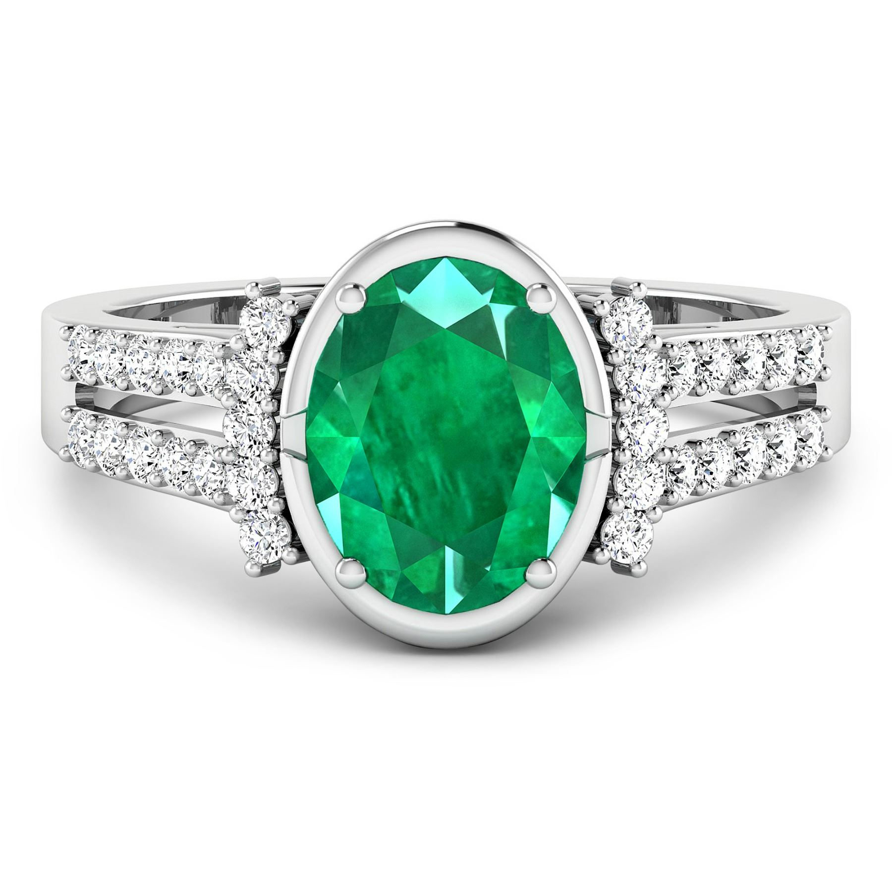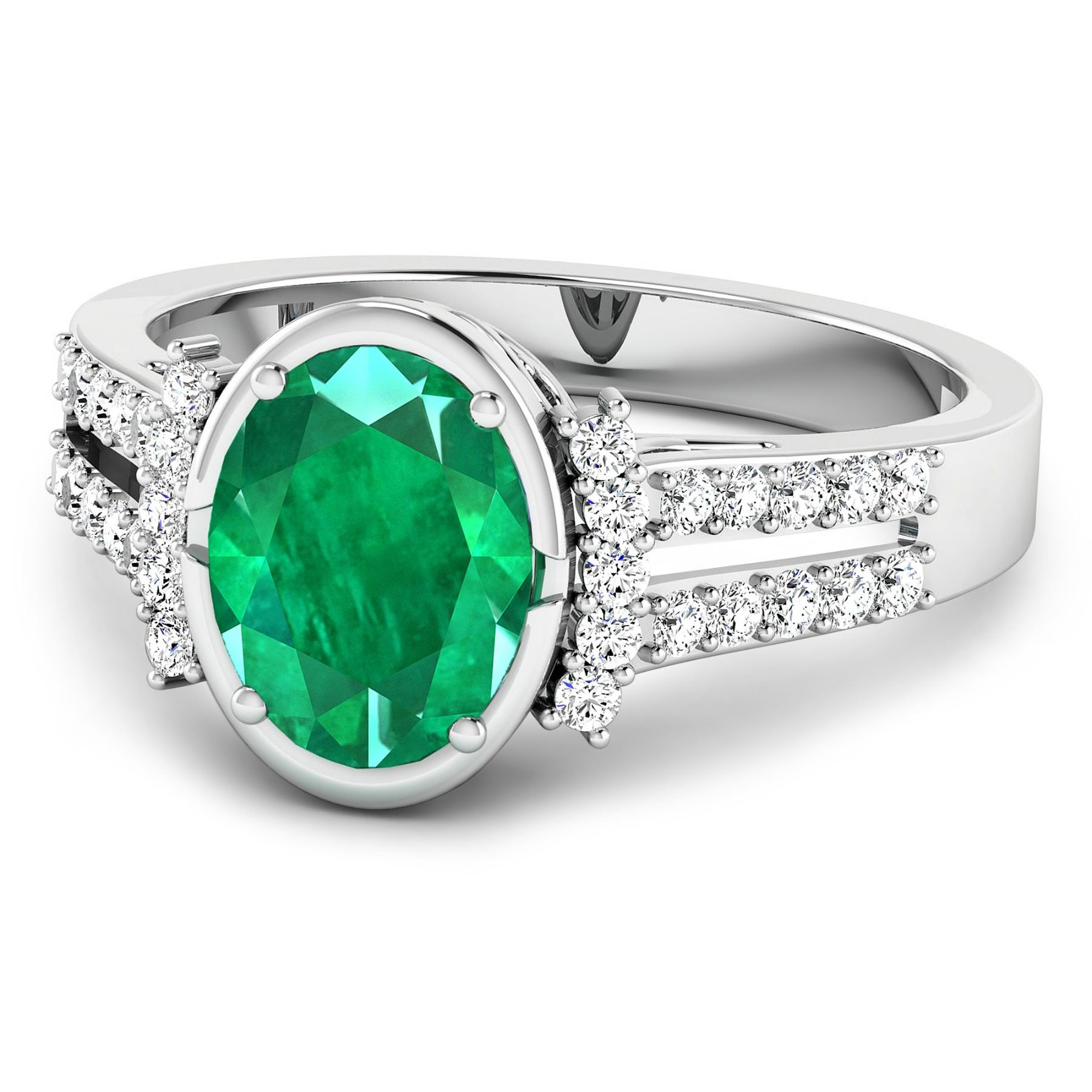 Zambian Emerald (AA) Oval 9x7mm - 1Pc + White Diamond F/C Round 1.30mm - 30Pcs ( SI-2/HI ) Total weight of gemstone is 1.53cts. Total Diamond weight is 0.3cts. Total weight of this ring is 3.22 grams. Ring size 7.