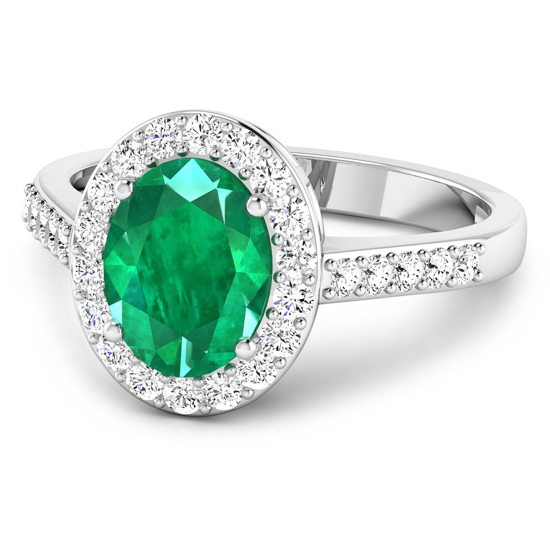 Zambian Emerald (AA) Oval 9x7mm - 1Pc + White Diamond F/C Round 1.50mm - 28Pcs ( SI-2/HI ) Total weight of gemstone is 1.53cts. Total Diamond weight is 0.39cts. Total weight of this ring is 2.69 grams. Ring size 7.