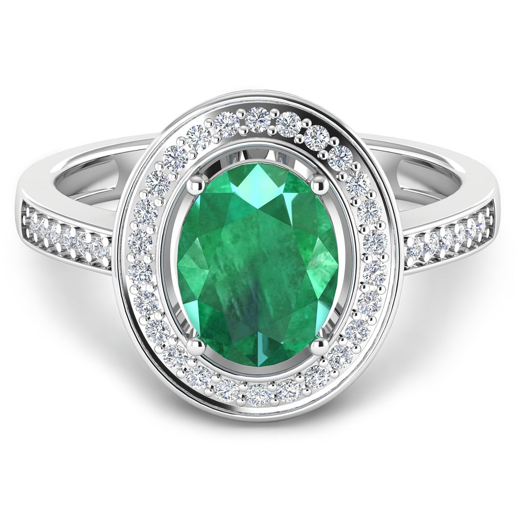 Zambian Emerald (AA) Oval 9x7mm - 1Pc + White Diamond F/C Round 1.10mm - 26Pcs + White Diamond F/C Round 1.00mm - 12Pcs (I1-I2/I color) Total weight of gemstone is 1.53cts. Total Diamond weight is 0.22cts. Total weight of this ring is 3.29 grams. Ring size 7.