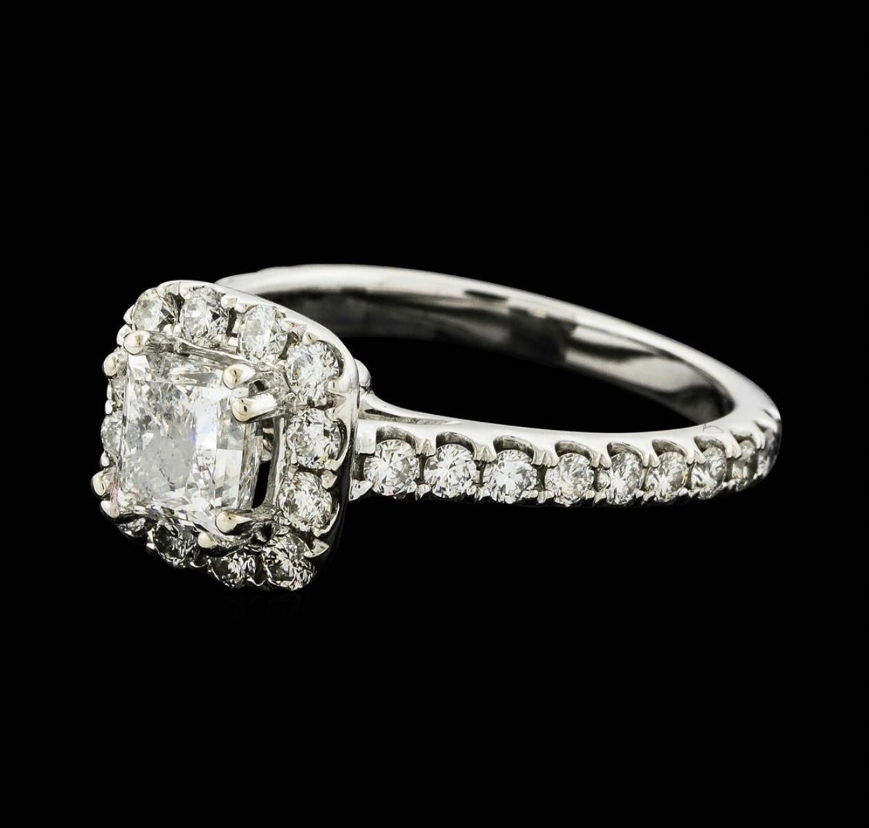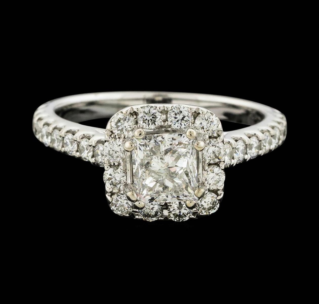 One electronically tested 14KT white gold lady's cast wedding ring with a cathedral halo with a bright polish finish. The featured lady's ring has a shank measuring 2.08 millimeters wide. Trademark is Neil Lane. Identified with markings of "14K". Condition is new, good workmanship. Containing: One prong set princess cut diamond, measuring 5.15 x 4.80 x 3.95mm (depth est.) approximate weight of 0.80ct. Graded in the setting. Clarity: I-1. Color: HCut Very Good Thirty-Two prong set round brilliant cut diamonds, measuring 1.80 - 1.70 x 1.09mm (depth est.) approximate total weight of 32 Stones = 0.65ct. Graded in the setting. Clarity: SI-1 to SI-2. Color: H - ICut Good Sixteen prong set round brilliant cut diamonds, measuring 1.20 - 1.10 x 0.71mm (depth est.) approximate total weight of 16 Stones = 0.09ct. Graded in the setting. Clarity: VS-2 to SI-1. Color: G - HCut Good. Total Weight of Diamonds 1.54ct. Total Weight of Ring 3.60gm. GAS Appraised.