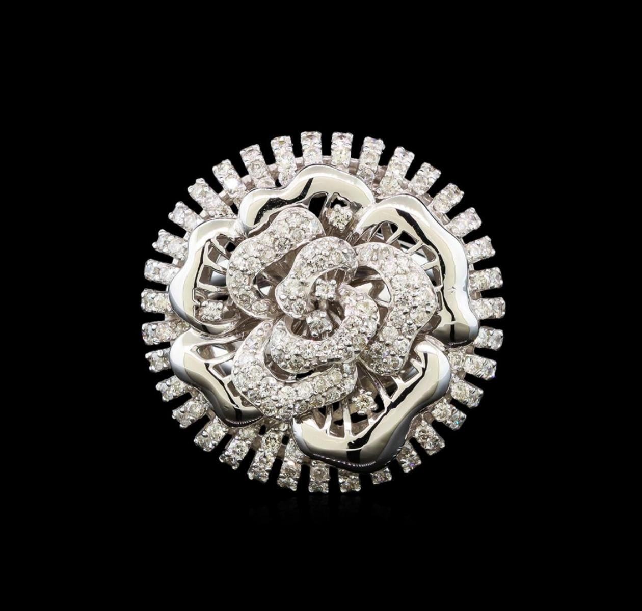 One electronically tested 14KT white gold ladies cast diamond ring with a bright polish finish. Identified with markings of "14K". Condition is new. Containing: One Hundred Ninety-Nine prong set round brilliant cut diamonds, measuring 1.30 - 1.30 x 0.78mm (depth est.) approximate total weight of 199 Stones = 1.59ct. Clarity: SI-2 to I-2. Color: H - I, Cut is Good. All diamonds are graded in the mounting, unless otherwise stated. Total Weight of Diamonds 1.59ct. Total Weight of Ring 11.20 grams. GGL Appraised.