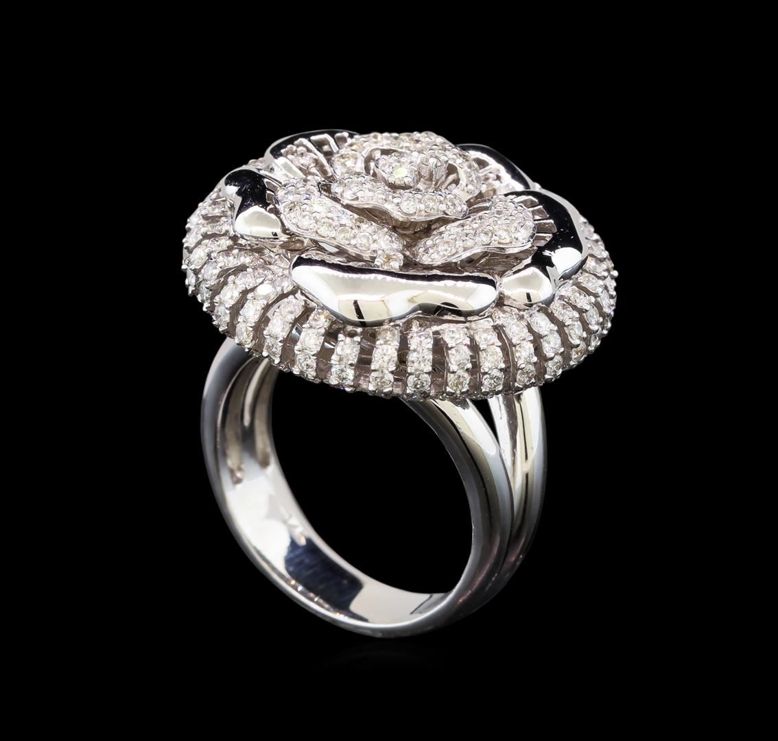 One electronically tested 14KT white gold ladies cast diamond ring with a bright polish finish. Identified with markings of "14K". Condition is new. Containing: One Hundred Ninety-Nine prong set round brilliant cut diamonds, measuring 1.30 - 1.30 x 0.78mm (depth est.) approximate total weight of 199 Stones = 1.59ct. Clarity: SI-2 to I-2. Color: H - I, Cut is Good. All diamonds are graded in the mounting, unless otherwise stated. Total Weight of Diamonds 1.59ct. Total Weight of Ring 11.20 grams. GGL Appraised.