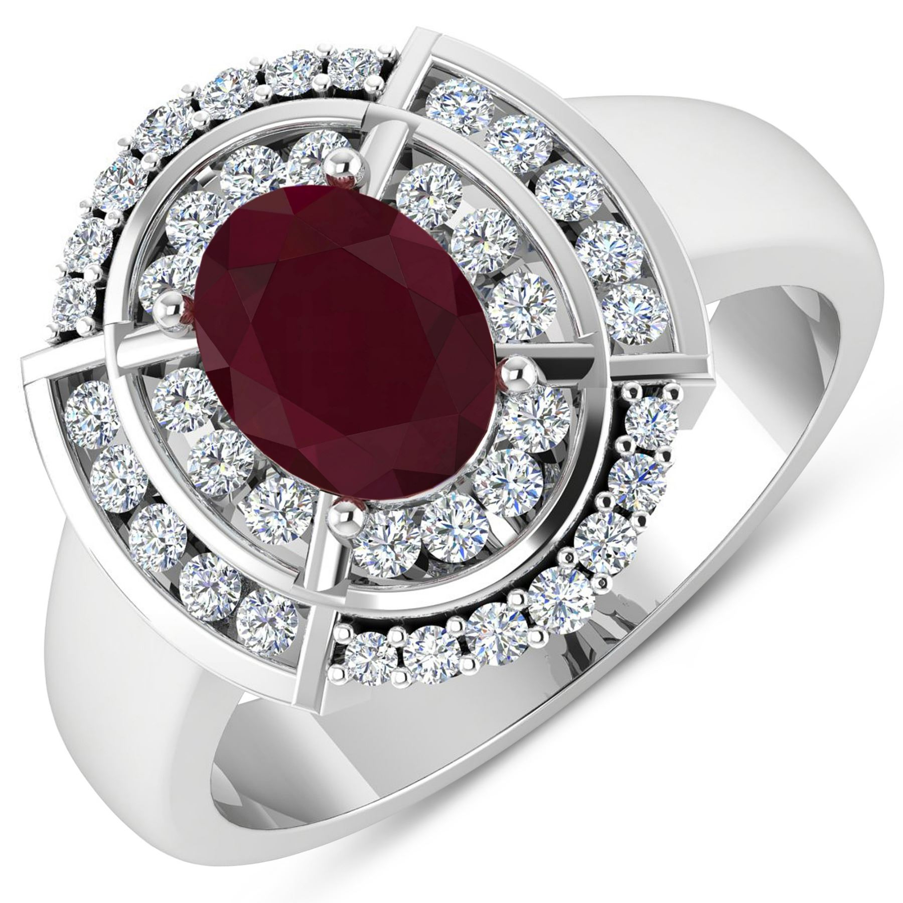 Ruby (AA) Oval 8x6mm - 1Pc + White Diamond F/C Round 1.50-1.60mm - 24Pcs + White Diamond F/C Round 1.20mm - 14Pcs (I1-I2/I color). Total weight of gemstone is 1.5cts. Total weight of Diamonds is 0.47cts. Total weight of this ring is 4.32 grams. Ring size 7.