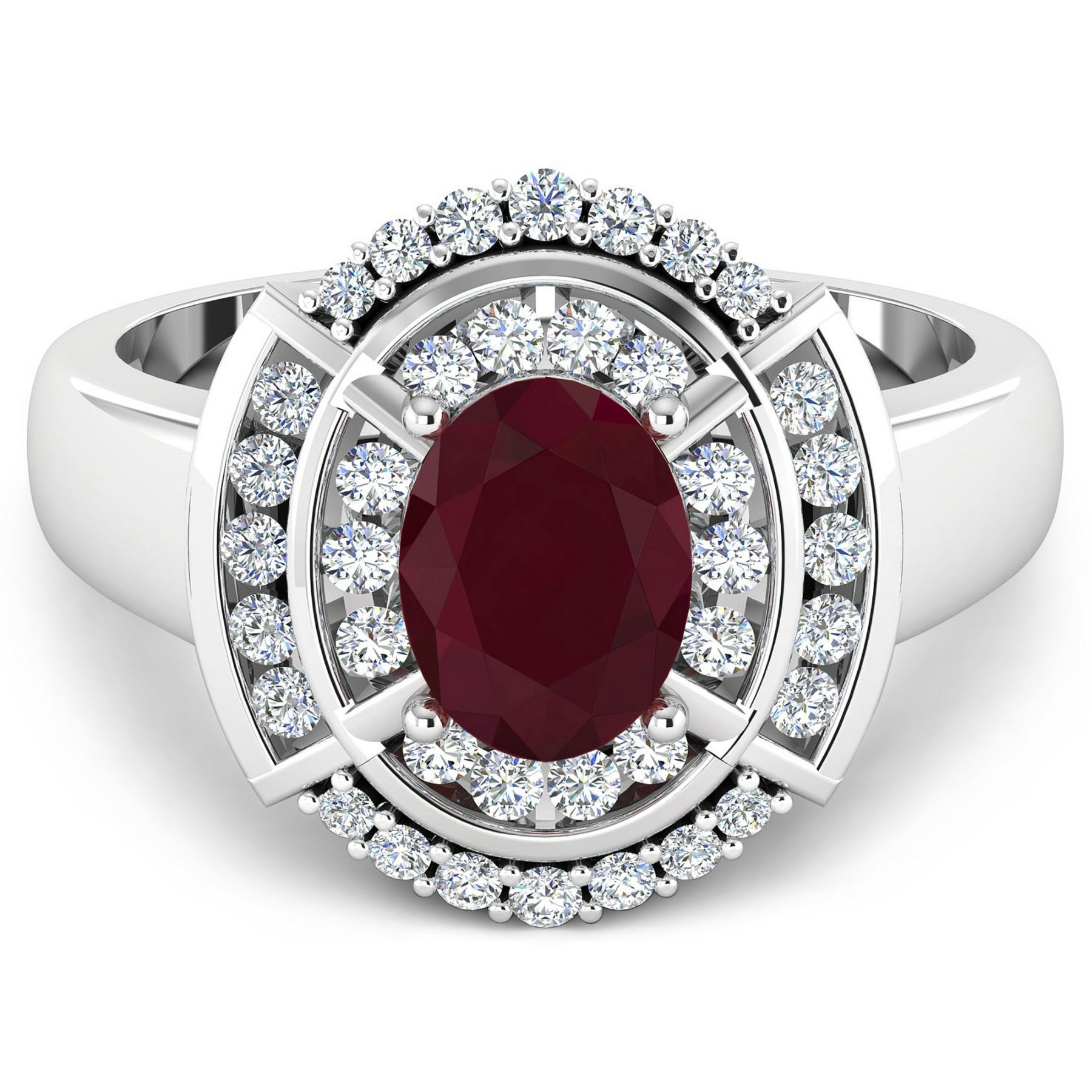 Ruby (AA) Oval 8x6mm - 1Pc + White Diamond F/C Round 1.50-1.60mm - 24Pcs + White Diamond F/C Round 1.20mm - 14Pcs (I1-I2/I color). Total weight of gemstone is 1.5cts. Total weight of Diamonds is 0.47cts. Total weight of this ring is 4.32 grams. Ring size 7.