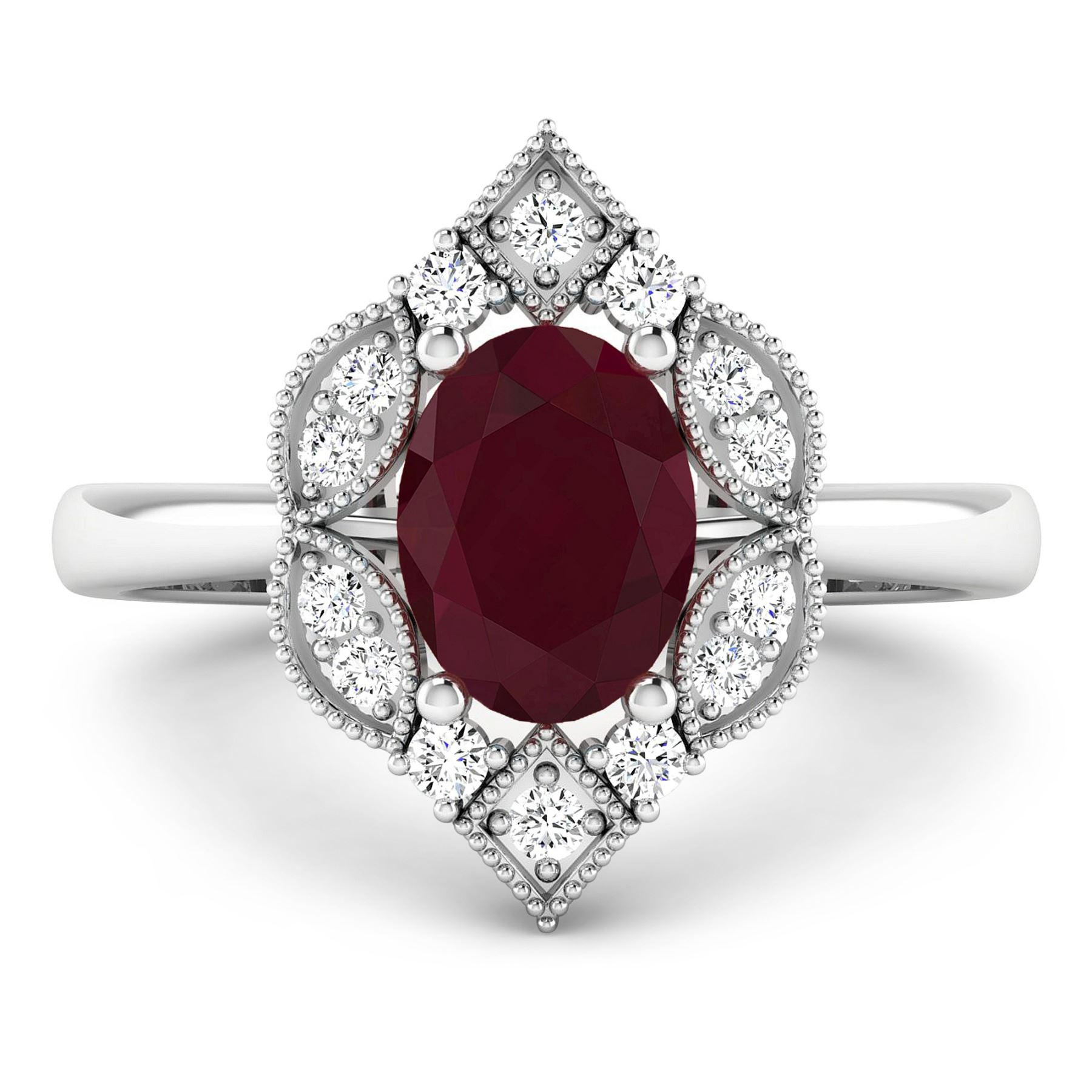 Ruby (AA) Oval 8x6mm - 1Pc + White Diamond F/C Round 1.50mm - 14Pcs ( I1-I2/I color ) Total weight of gemstone is 1.5cts. Total Diamond weight is 0.2cts. Total weight of this ring is 2.54 grams. Ring size 7.