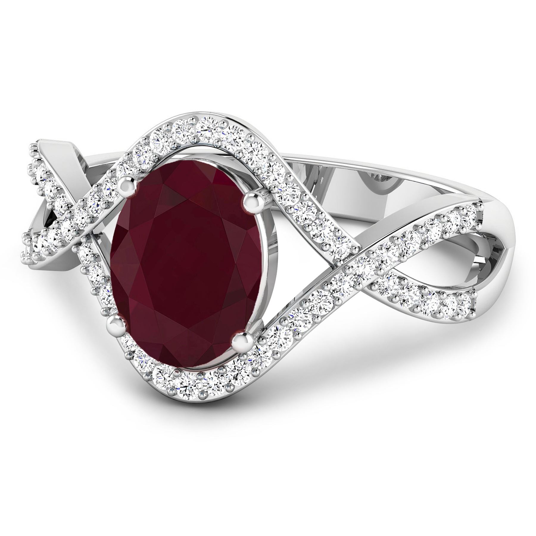 Ruby (AA) Oval 8x6mm - 1Pc + White Diamond F/C Round 1.00mm - 52Pcs ( I1-I2/I color ) Total weight of gemstone is 1.5cts. Total Diamond weight is 0.24cts. Total weight of this ring is 2.78 grams. Ring size 7.