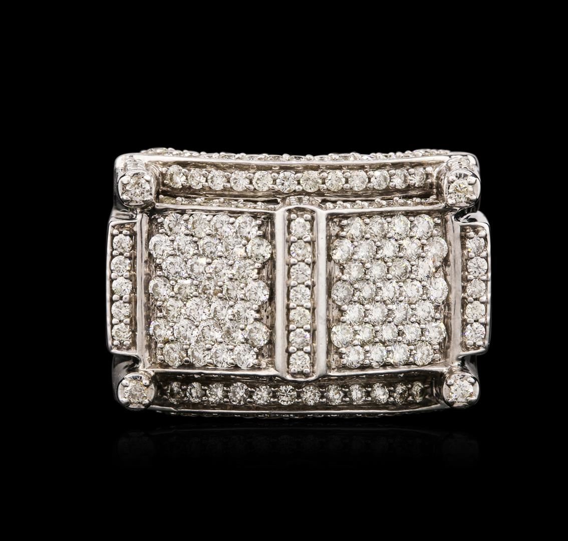 One electronically tested 14KT white gold mens cast diamond ring with a bright polish finish. Condition is new. Containing: One Hundred Sixty bead set round brilliant cut diamonds, measuring 1.50 - 1.30 x 0.84mm (depth est.) approximate total weight of 160 Stones = 1.60ct. Clarity: SI-1. Color: H - I. All diamonds are graded in the mounting, unless otherwise stated. Total Weight of Diamonds 1.60ct. Total Weight of Ring 23.50 grams. GGL Appraised at $8,645.00.