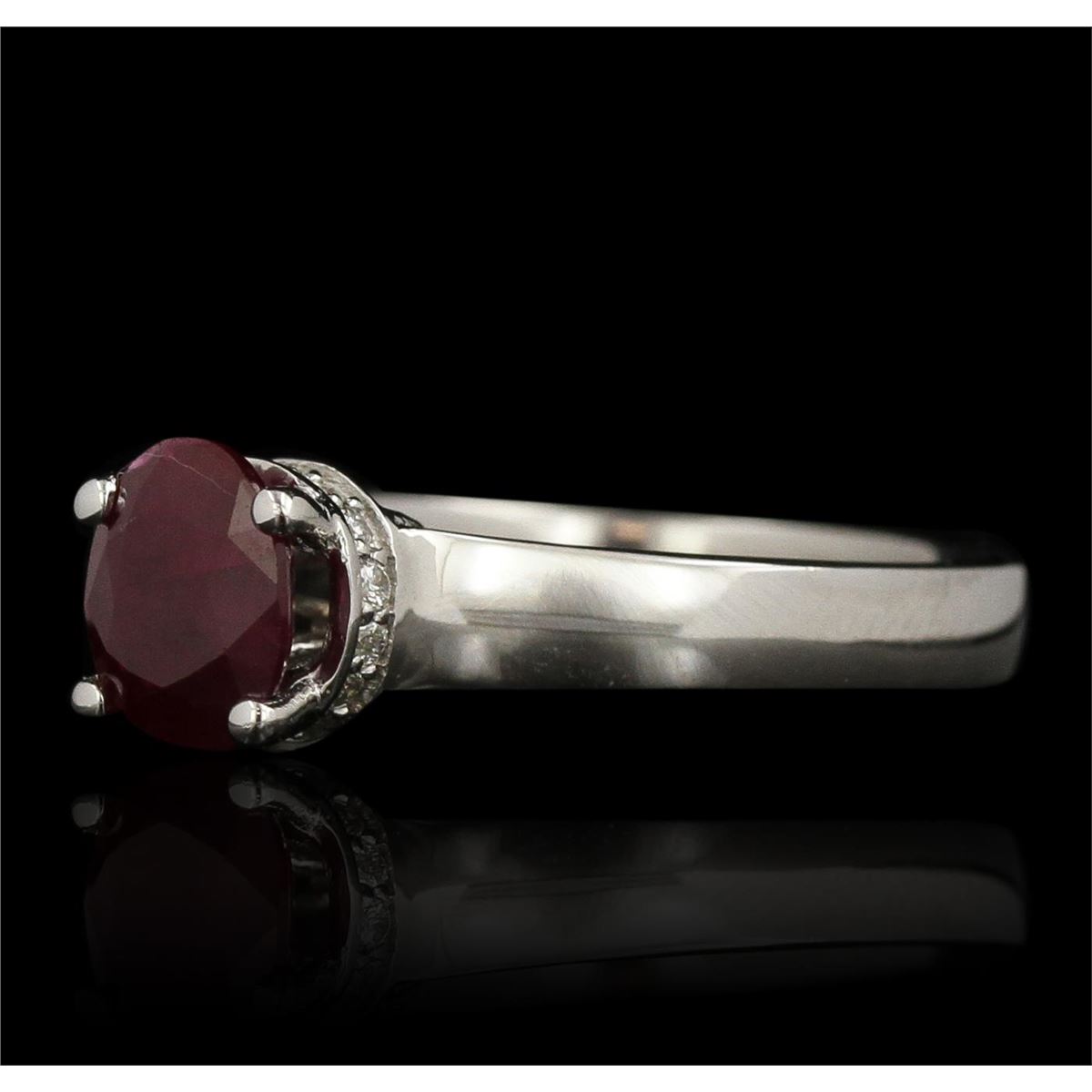 One ring featuring: 4.70 grams of 14KT white gold, (1) 1.61ct ruby and 0.12cts of diamonds.