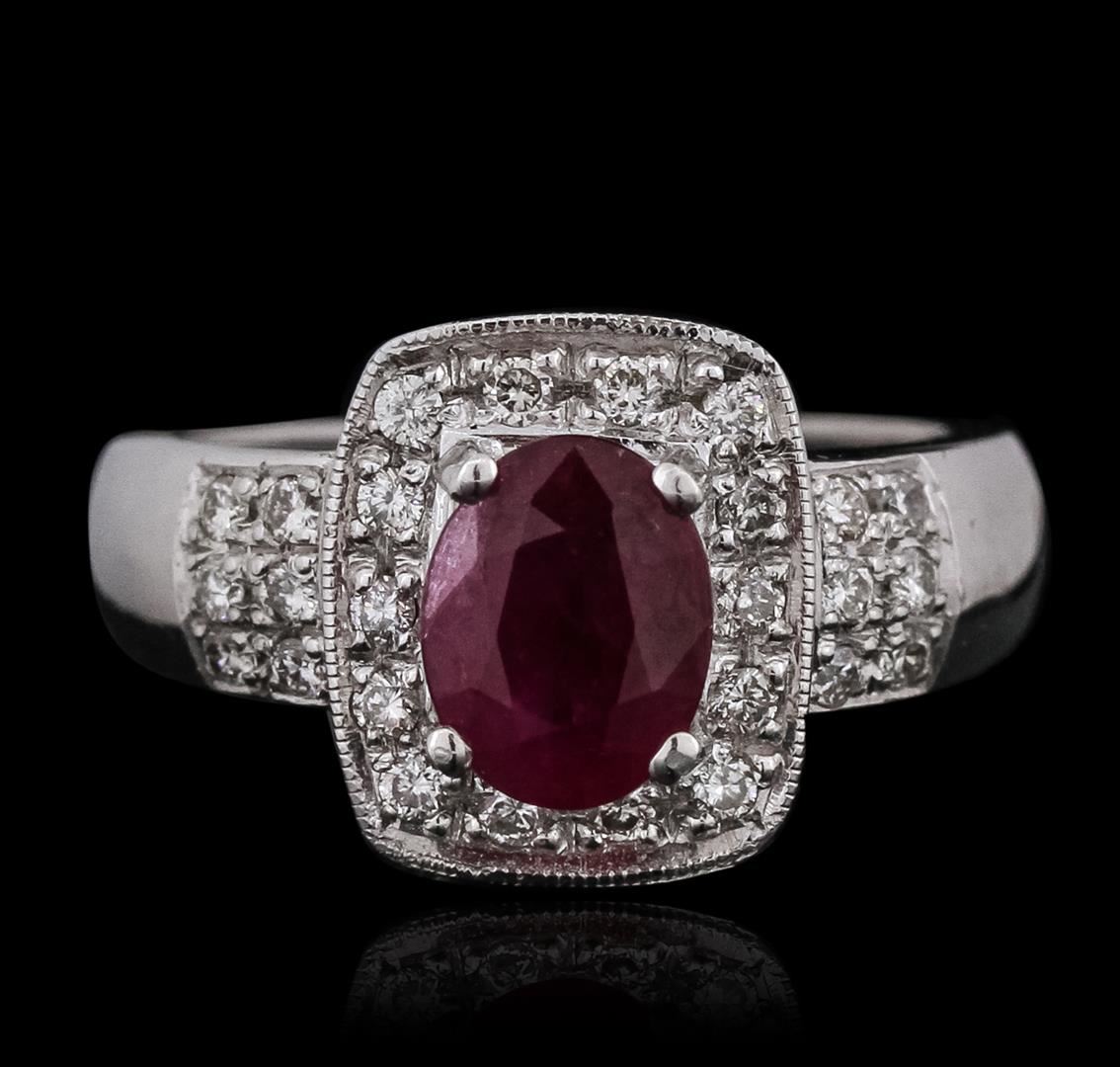 One ring featuring: 14KT white gold with a total weight of 7.13 grams, ruby with a total weight of 1.62ct, and diamonds with a total weight of 0.60ctw.