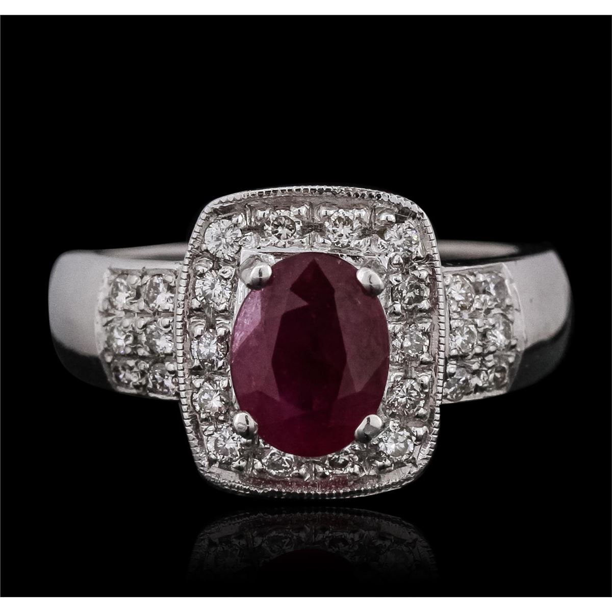 One ring featuring: 14KT white gold with a total weight of 7.13 grams, ruby with a total weight of 1.62ct, and diamonds with a total weight of 0.60ctw.